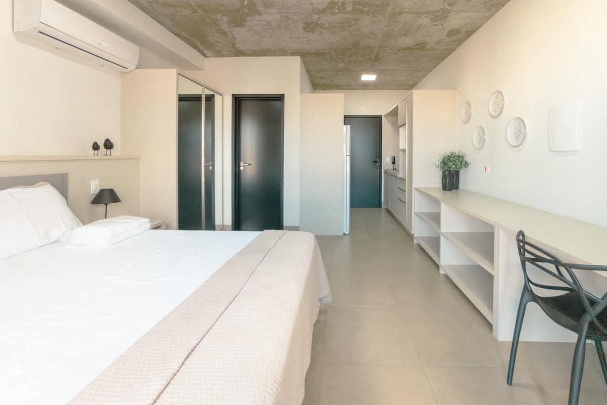Moderno apartamento en planta baja con 1 dormitorio disponible, seguro en Jardim Aclimação, ideal para un máximo de 2 huéspedes. Ofrece check-in autónomo las 24 horas, Wi-Fi rápido, TV inteligente Android, aire acondicionado dividido y cocina completa. Disfruta del balcón privado del jardín con parrilla y un condominio completo con piscina, gimnasio, coworking, conserje las 24 horas y monitoreo de IA. Ubicación estratégica: cerca del Parque do Ingá, la universidad Unicesumar, el centro, los centros comerciales, los bares, la atención de emergencia y el mercado.