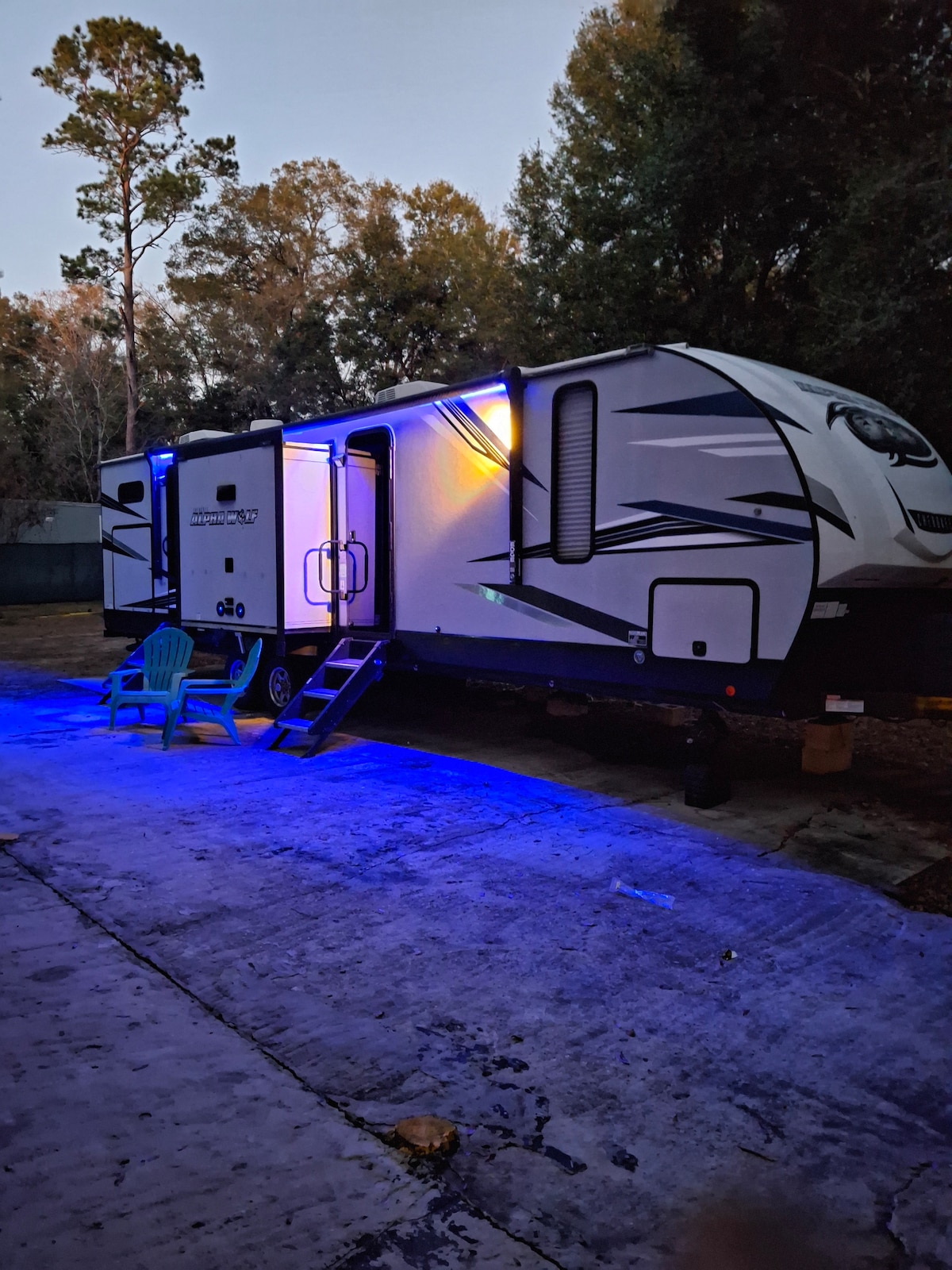 Si buscas desconectarte y disfrutar de una escapada tranquila en el bosque, este lugar es ideal para ti. Acogedora casa rodante ubicada en un entorno tranquilo cerca de Rainbow River. Sencillo, limpio y relajante. ✨ Capacidad para 3 personas cómodamente • Cocina completa • Baño privado dentro de la casa rodante 🔥 Disfruta de tu propia fogata privada o solicita acceso a una fogata compartida más grande en la parte trasera de la propiedad 🌿 Cerca de manantiales, naturaleza y aventuras al aire libre Perfecto para amantes de la naturaleza, parejas o familias pequeñas que buscan una escapada tranquila.