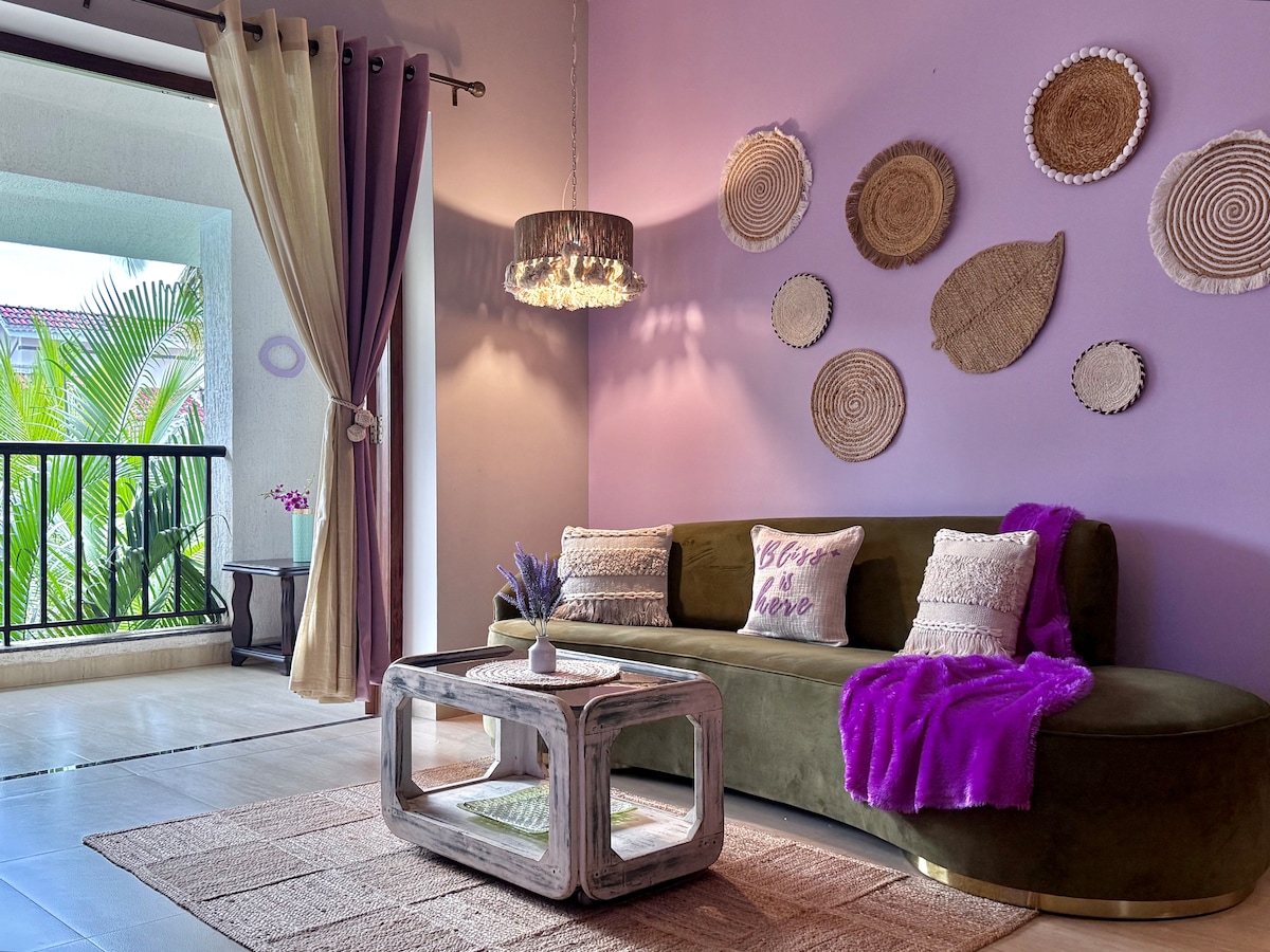 🌿Kp'Aloria por @vimovacation: ¡Apartamento bellamente adornado con una estética atractiva y minimalista con toques de color!🎨 ♥ Sumérgete en la PISCINA, balancéate en el parque y siéntete seguro en una comunidad cerrada 24/7 con amplio estacionamiento ♥ Recarga las pilas con un ambiente natural y servicios cómodos. 🚗Perfectamente preparado para acceder a los lugares más populares de Goa: Anjuna, Assagao, Baga, Vagator, Morjim 🍹 Thalassa 🍸 Casa de Chapora 🎶 Darlings Bar, Boiler Maker: 3 km 🏖️Uddo/Anjuna/Vagator/Morijim Beaches: 2-6 km