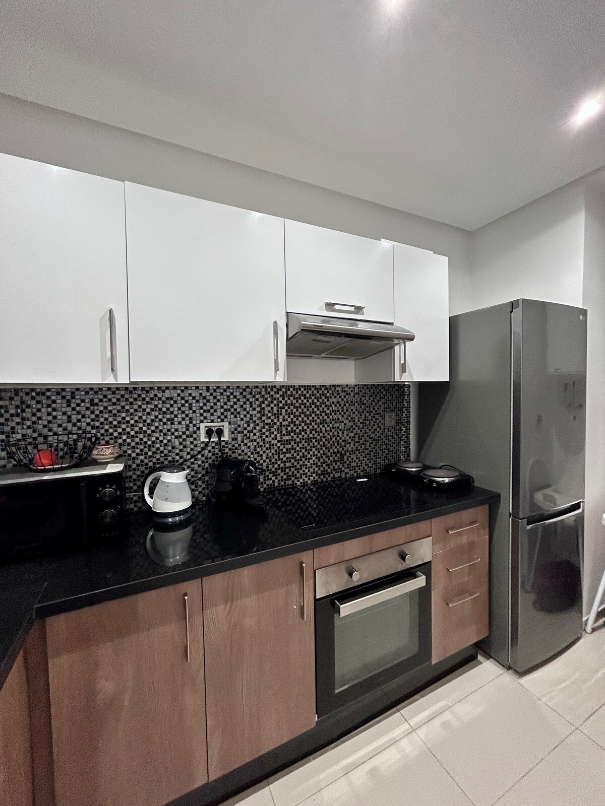 - Disfrute de este alojamiento elegante y céntrico, ideal para sus estancias turísticas o sus viajes de negocios - Situado en el corazón de Marrakech, Gueliz Hivernage. Proporciona todas las comodidades necesarias para una estancia perfecta (piscina, IPTV, Netflix...) - Situado a pocos pasos de la avenida M, Palacio de Congresos, centro comercial Menara Mall, Casino Essaadi, estación de tren y una pista de pádel - Fácil aparcamiento en la calle - Barrio tranquilo y muy limpio. El barrio más elegante de Marrakech.