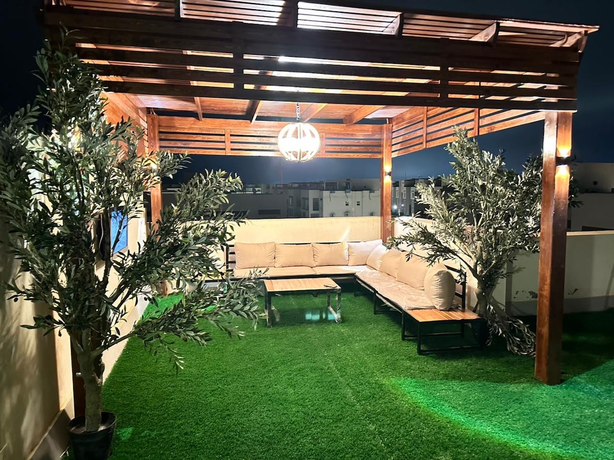 Relájate con tu familia o pareja en este sereno refugio, a solo 200 metros de la mejor playa de Matrouh (Obbayed). Disfruta de un estudio privado con su propia entrada en una villa cerrada, que ofrece un jardín y un acogedor patio. Muchas actividades, supermercados y cafeterías están disponibles junto a la playa.