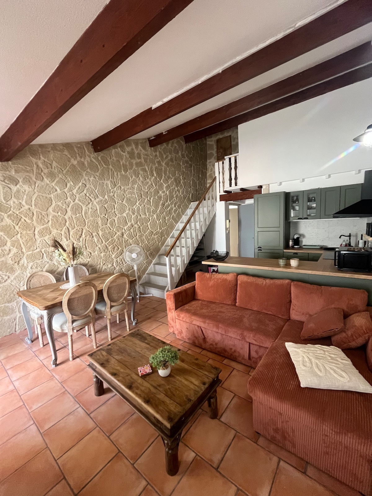 Bienvenido a nuestro estudio con altillo. Se encuentra en un pequeño edificio de 2 plantas sin ascensor en el corazón del centro de la ciudad de Martigues en una pequeña calle tranquila Ha sido completamente restaurado, está climatizado y hay mosquiteros instalados. Los muebles y la ropa de cama son nuevos 1 cama de 160 cm x 200 cm en el altillo y 1 sofá cama de 140 cm x 190 cm en la sala de estar Lavadora, perchero, tendedero, cafetera nespresso, Wifi Se proporcionan sábanas y toallas . No fumadores