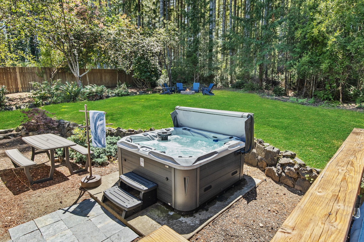 Relájate y desconecta en nuestra casa frente a la playa con bañera de hidromasaje privada y acogedora chimenea. El hermoso Pickering está recientemente renovado y tiene capacidad para 6 personas. Despiértate con impresionantes vistas del monte Rainier, pasea por la playa, sumérgete en el jacuzzi, envuelve en una bata de spa y ponte acogedor junto a la chimenea de leña. Cocina en la estufa de gas, cena en la terraza, respira el aire fresco del bosque. Siempre completamente limpio y desinfectado después de cada huésped. Se admiten perros (preferiblemente de menos de 20 libras), con una tarifa por mascota.