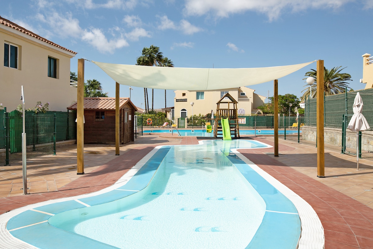 Precioso bungalow totalmente reformado. Parking gratuito, Wi-Fi gratuito, equipado para pasar unas vacaciones con total autonomía. Lavadora, lavavajillas. En la residencia hay servicios de Bar/Restaurante, 3 piscinas (gratis para residentes y huéspedes 10:00 a.m./19:00 p.m.) 4 nuevas pistas de pádel y un centro de yoga holístico (Yoga Alliance School Maspalomas Lago).