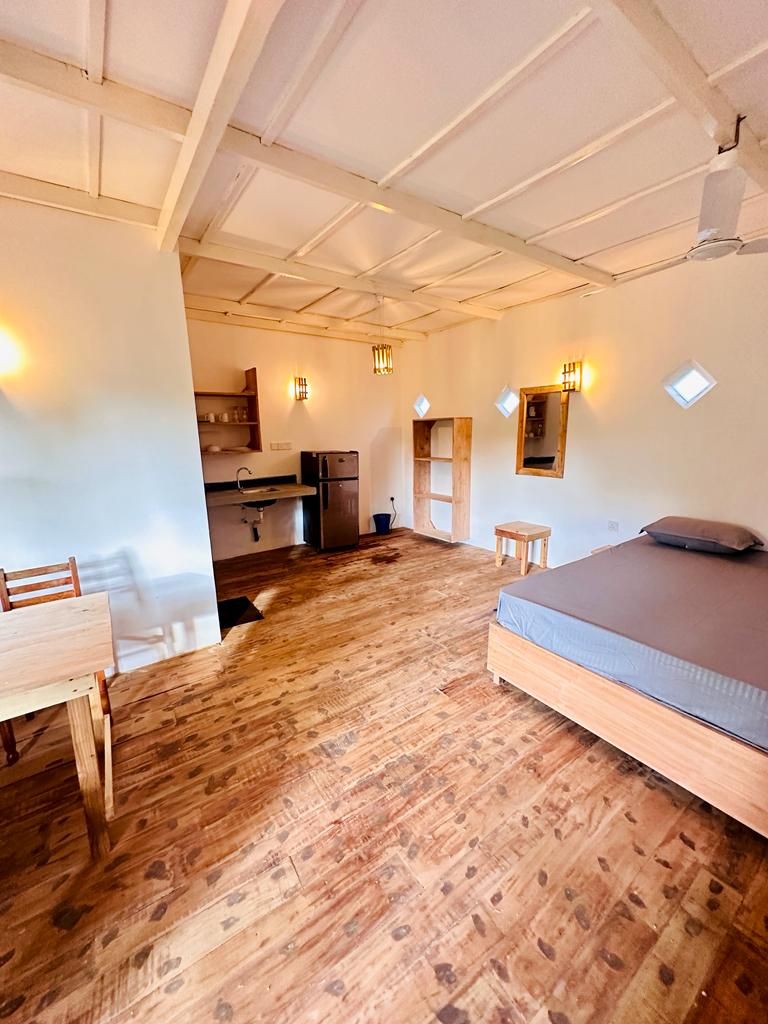 Una habitación muy espaciosa con una cama en el entrepiso y una gran sala de estar en la planta baja. La habitación tiene cocina privada y ducha en el patio trasero fuera del espacio. Aire acondicionado, ventilador, agua caliente, mosquitero y un buen wifi para una estancia cómoda. Además, podrás disfrutar de algunos cocos de nuestro jardín y de la tranquilidad de un pueblo, mientras sigues estando a 15 minutos en auto de la zona de playa de Weligama.