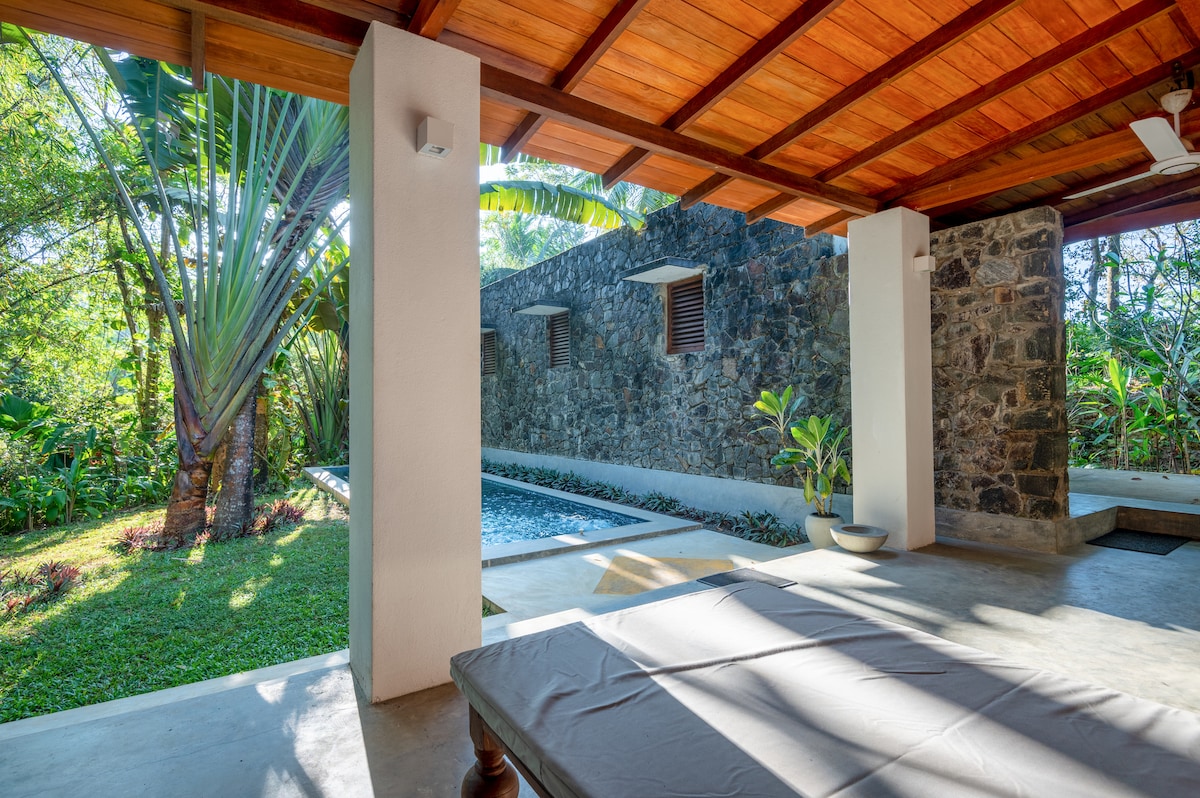 Descubre nuestra encantadora casa de campo de piedra de un dormitorio con baño al aire libre, patio privado y una espaciosa terraza. Ubicada dentro de una finca en la ladera cerca de las playas de Mirissa y Weligama, la cabaña ofrece acceso directo a una playa semiprivada y una acogedora piscina de inmersión de 8 metros ideal para la relajación. Desayuno de cortesía. Cargos suplementarios festivos: Navidad: adulto 100 $, niños (menores de 12 años) $ 50, (0-5) $ 30 Año Nuevo: Adultos $100, Niños (menores de 12 años) $50, (0-5) $40
