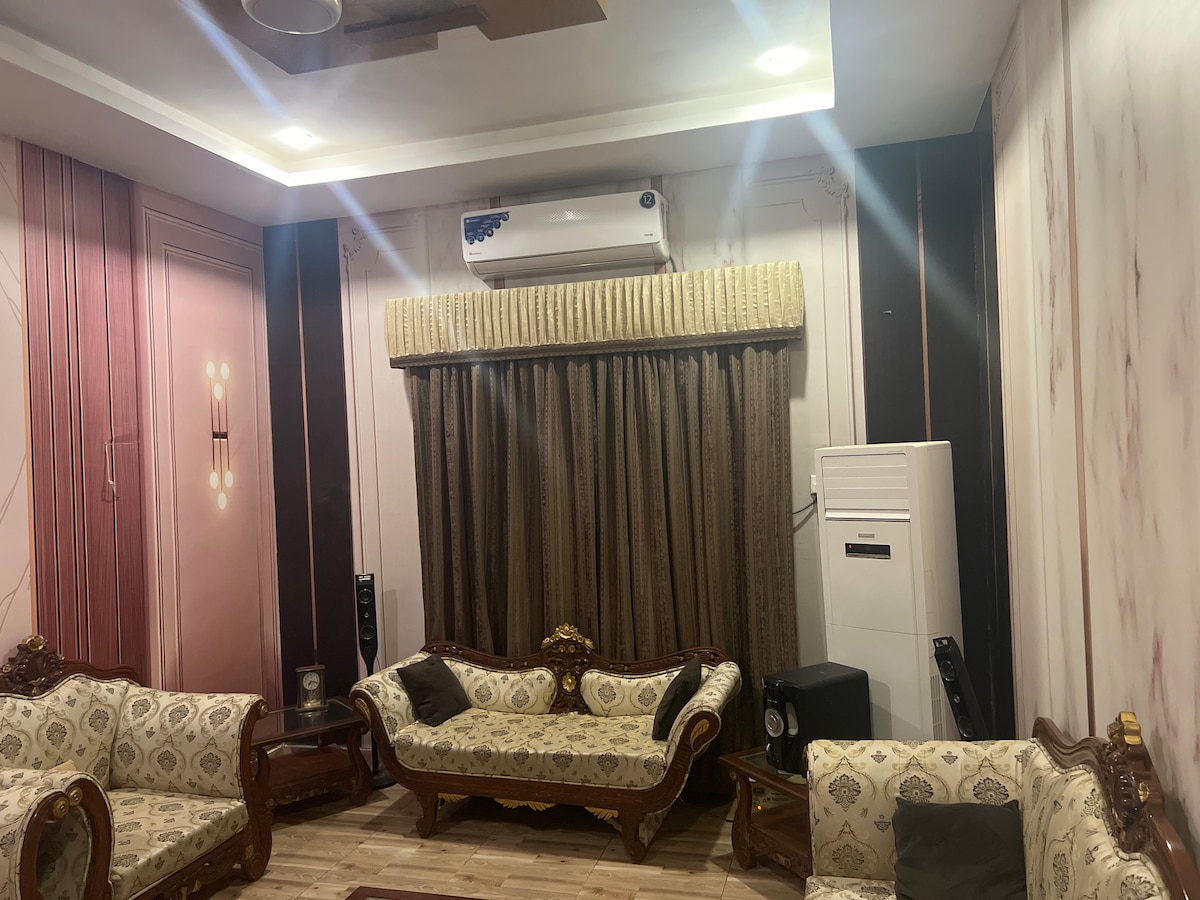 Cómoda casa privada de 1 dormitorio con baño adjunto, acogedores sofás y comedor. Ubicado en Qadir Avenue, cerca de Everest Law College Bypass, junto a Saima Downtown y cerca del restaurante Kababjees. Incluye estacionamiento, un entorno tranquilo y fácil acceso a las carreteras principales, restaurantes y necesidades diarias, ideal para parejas, familias o viajeros de negocios.