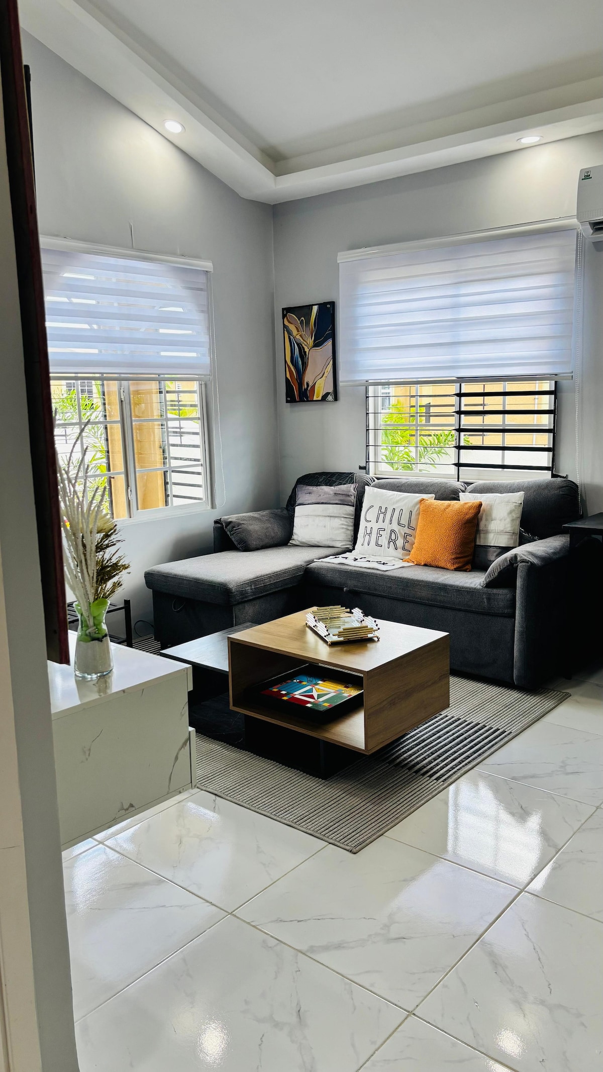 Disfruta de un elegante alojamiento de 2 dormitorios a pocos minutos de la ciudad, con una decoración moderna, una cocina completa y una acogedora sala de estar. Relájate con la PS4 o descubre las tiendas, los restaurantes y las atracciones cercanas, todo a tu alcance. Con detalles cuidados, un diseño de buen gusto y una comodidad inmejorable, este alojamiento es la combinación perfecta de confort y estilo para tu próxima estancia en Old Harbour.