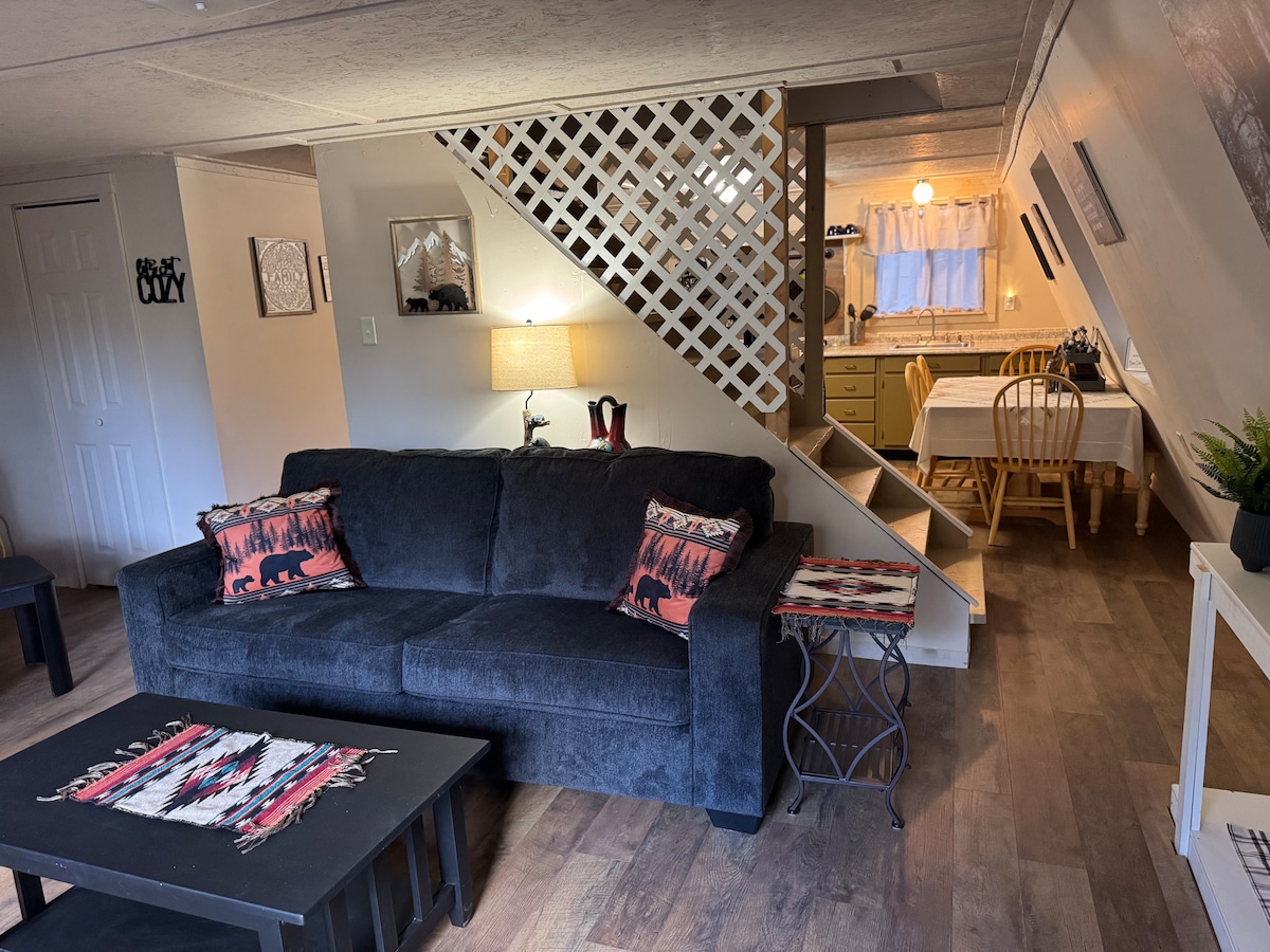 ¡Vuelve a un lugar y una hora más sencillos! Nuestra cabaña está en un vecindario tranquilo en un lote de un cuarto de acre. Remodelado para la comodidad y el disfrute, ¡pero todavía tiene ese encanto rústico para darte la escapada perfecta a la montaña! Disfruta de una gran noche de sueño en nuestro King Serta Perfect Sleeper. Mientras que los huéspedes adicionales eligen entre el sofá cama doble de espuma viscoelástica XL. Nuestra cocina está totalmente equipada para que cocines tus propias comidas, ¡y tenemos muchos juegos para mantenerte ocupado!
