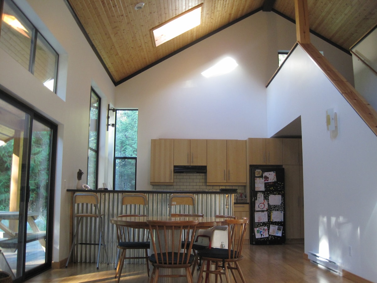 Ven a visitar la hermosa isla Mayne (S,ḴŦAK) en territorio W̱SÁNEĆ y conecta con la naturaleza, la familia y contigo mismo. Alójate en un espacio privado, limpio y moderno en el bosque. A 1 minuto a pie de la playa y del acceso al barco. Explora el parque nacional de la zona y desconecta mientras te relajas en la terraza o junto al fuego.