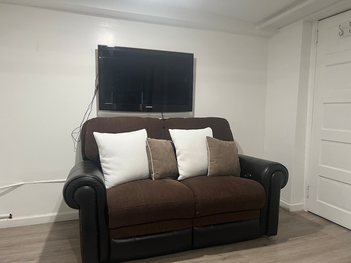 Hermoso sótano privado recién remodelado ubicado a 25 minutos en autobús o coche del centro de la ciudad de Nueva York. El apartamento cuenta con baño privado y entrada, sala de estar con sofás y un cómodo dormitorio privado. No se incluye cocina, pero hay una nevera pequeña disponible para uso de los huéspedes. El apartamento está a 5 minutos a pie del autobús de tránsito de Nueva Jersey a la ciudad de Nueva York, un parque y una pista de tenis al aire libre, y varios restaurantes.