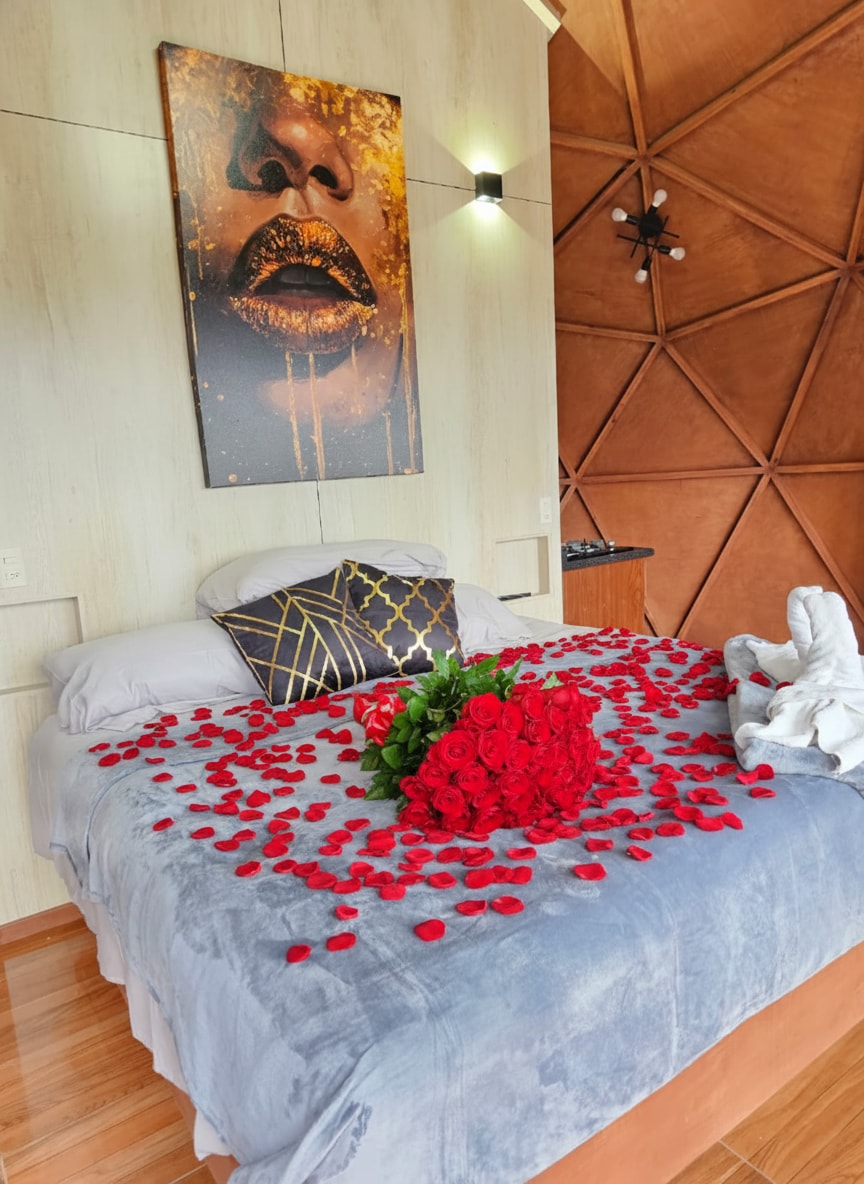 Escápate a una cabaña de lujo en el corazón del bosque, rodeada de pinos y silencio absoluto. Un refugio íntimo diseñado para parejas que buscan privacidad y conexión. La habitación es totalmente privada e integra jacuzzi, cine con proyector y sound bar, además de baño y sauna exclusivos con acceso privado. El sofá cama se ubica en la sala y puede alojar hasta 2 personas adicionales. La cabaña cuenta con un solo baño. Un espacio elegante para una experiencia inolvidable.