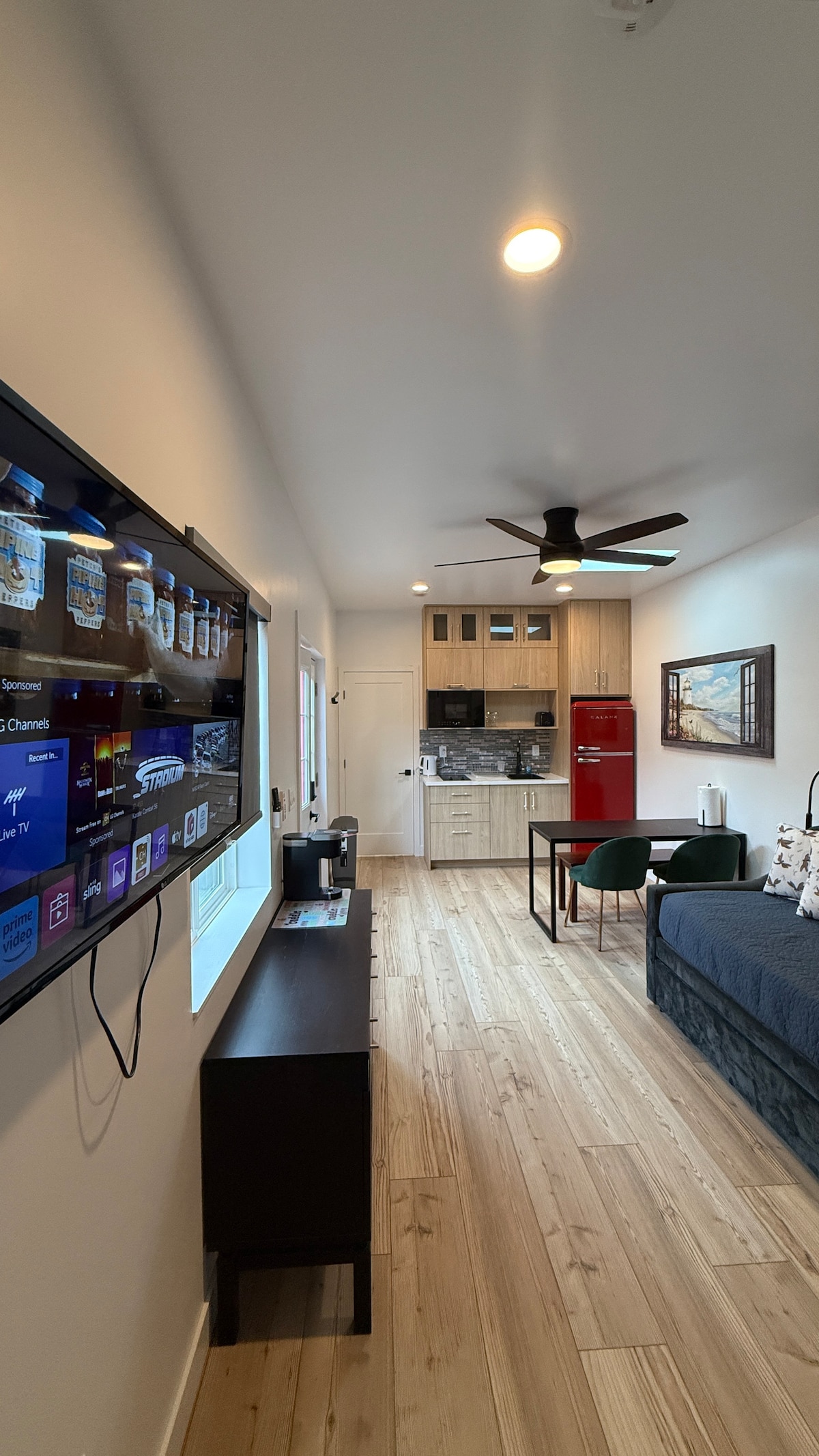 Este alojamiento espacioso y cuidadosamente diseñado es un refugio sereno perfecto tanto para el trabajo como para la relajación. Ubicado en un barrio tranquilo, el espacio cuenta con: Cocina completa con todo lo necesario para cocinar en casa Espacio de trabajo exclusivo con un monitor para trabajar a distancia o estudiar Cómoda sala de estar con una estética acogedora y moderna. Entrada privada para total privacidad y facilidad Ya sea que estés aquí para una escapada de fin de semana, una estadía más larga o un viaje de trabajo tranquilo, este refugio ofrece comodidad y conveniencia.