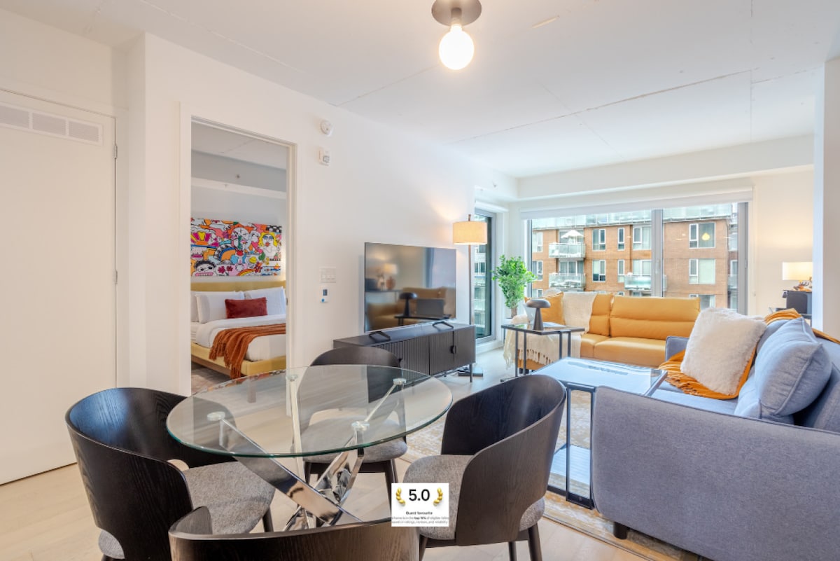 Disfruta de la comodidad moderna en el corazón del centro de Montreal. Esta elegante unidad tiene capacidad para un máximo de 6 huéspedes con un dormitorio tamaño queen y dos sofás cama. Disfruta de una cocina totalmente equipada, un baño contemporáneo, estacionamiento gratuito y acceso al cargador de vehículos eléctricos. A pocos pasos de restaurantes, tiendas y las principales atracciones, es perfecto para familias, profesionales o estancias largas.