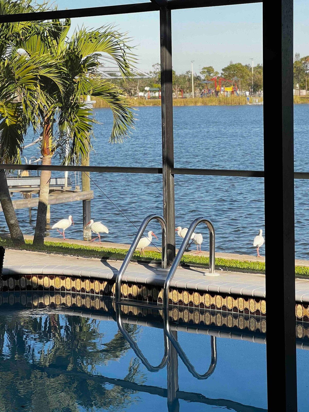 Esta encantadora casa junto al lago cuenta con piscina climatizada, suite principal con cama tamaño king, baño privado y salida privada al lanai. Un dormitorio con cama queen, un dormitorio con dos camas individuales y una cocina totalmente equipada. Impresionantes vistas del amanecer y del atardecer, a poca distancia a pie de Sunsplash. The Courts: un complejo de pickleball con 32 canchas, bolera, minigolf y laser tag. Saratoga Park, a poca distancia en auto de playas, campos de golf e instalaciones de entrenamiento de primavera. La propiedad, con una ubicación céntrica, se encuentra en Cape Coral, Fort Myers y Pine Islands.
