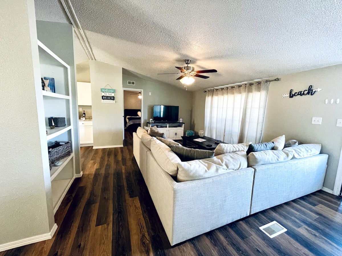 Two Peaks offers newly built neighboring identical cottages. The North Peak offers modern appliances, tall vaulted natural wood ceiling, reclaimed wood design throughout, full kitchen with icemaker, big screen TV, Wi-Fi, and comfortable queen size beds. Boat parking with external water and electrical outlets. Perfect for traveling with a group. Located at Willow Springs on Lake Texoma. Marina, boat ramp, and beaches a mile away. Golf cart friendly area. Ask about golf cart rentals.