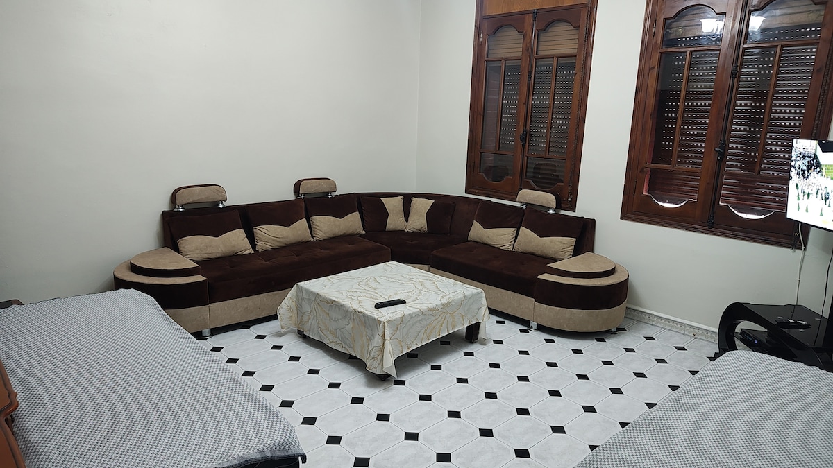 Nuestro apartamento está en una planta de una villa situada en una zona residencial muy tranquila, cerca del hospital Frantz Fanon. - Acceso rápido a la autopista - No muy lejos del centro de la ciudad de Blida Estaremos encantados de recibirle mi marido y yo , esperamos que 😊 se sienta como en casa.