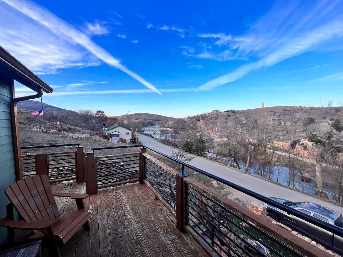 Disfruta de un alojamiento de lujo en Medicine Park con vistas al arroyo y a la montaña, camina hasta Cobblestone Row y Bath Lake. Capacidad para 10 personas con 1 cama tamaño king, 1 cama tamaño queen, 1 cama doble, 3 camas nido individuales y un sofá cama. Cuenta con 4 dormitorios: 2 dormitorios completos, 1 dormitorio loft con puerta, 1 dormitorio loft abierto con vistas al área principal, 2 baños, cocina completa, nueva gama. Frente al Riverside Café y Parkside Tavern. Ideal para vacaciones en familia, escapadas románticas y aventuras en la naturaleza. Precio basado en el número de huéspedes, mascotas, época del año.