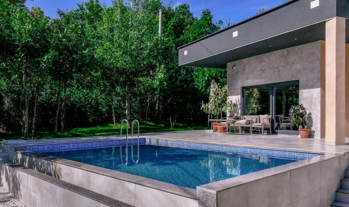 Un refugio al aire libre para familias y amigos El espacioso jardín ajardinado es perfecto para barbacoas, cenas al aire libre o simplemente compartir momentos con tus seres queridos. Las familias valorarán la seguridad, la privacidad y el espacio, mientras que las parejas pueden relajarse con los sonidos pacíficos de la naturaleza bajo un cielo estrellado y disfrutar de la bañera de hidromasaje privada.🌊 En el nivel medio, encontrarás la característica más destacada de la villa, una piscina privada de 8x4 m🏊♀️ con mucho espacio para tomar el sol, descansar o tomar una bebida por la tarde.