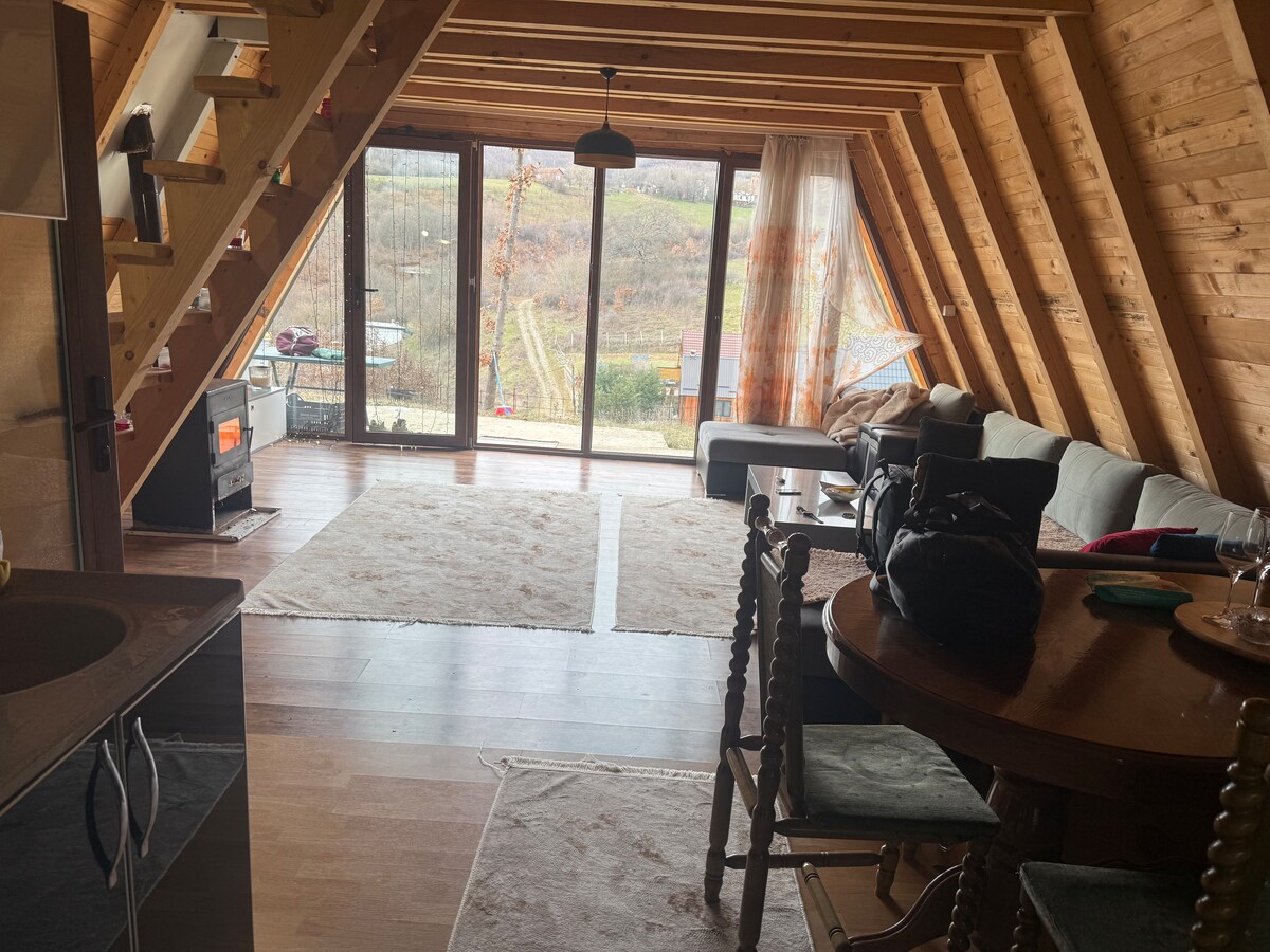 Un lugar ideal para relajarse, disfrutar del paisaje panorámico y seguir estando muy cerca del centro de la ciudad. Disfruta del ambiente del campo en una cabaña de madera única, hecha con amor por la familia Krasniqi.