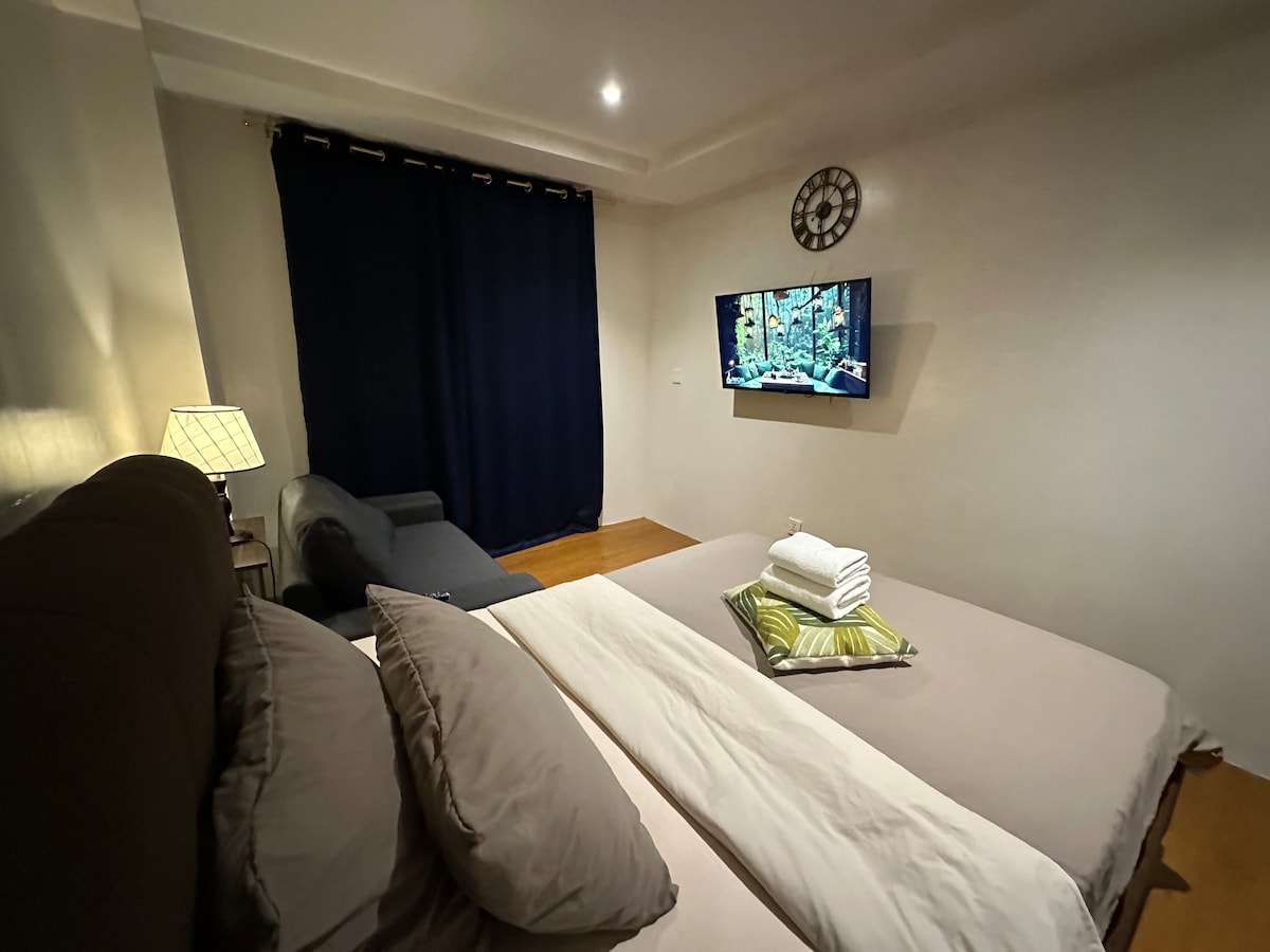Experimenta el lujo en todos y cada uno de los rincones de esta moderna y lujosa unidad de condominio BrandNew Centrally located. Disfruta de una experiencia increíble y relajante con cama doble completa cubierta con fundas de edredón Ikea. Siéntate en un sofá cama de 2 plazas mientras ves tu serie favorita de NETFLIX en un televisor de 40 pulgadas. Utensilios completos de cocina y comedor. Amplia área de estudio para las necesidades de la FMH con velocidad de Internet de fibra de hasta 80 MBPS. T&B limpio y fragante con ducha fría y caliente.