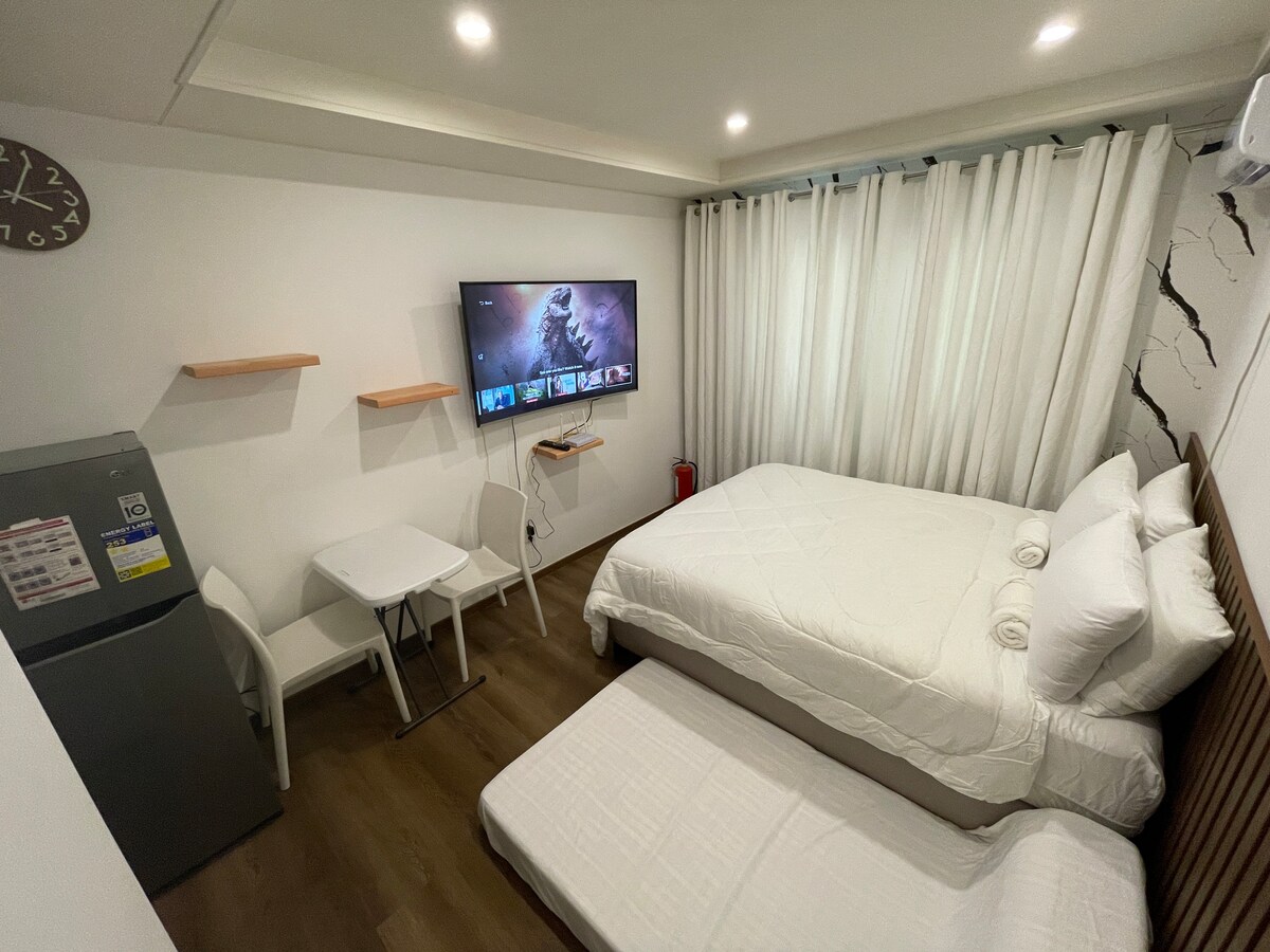 Es un estudio de 27 metros cuadrados ubicado en Megatower Residences, justo en el centro de la ciudad. Te encantará por su comodidad. La vista desde la ventana también es relajante. Ideal para parejas y aventureros solitarios. Velocidad del wifi de 10 mbps. La hora de llegada AUTÓNOMA es a las 14:00 horas y la hora de salida es a las 12:00 horas. REGISTRO / Es obligatorio presentar un documento de identidad. Se puede organizar un horario flexible de llegada y salida (consulta las normas de la casa). Nuestra unidad requiere que los huéspedes tiren la basura adecuadamente en un conducto de basura designado durante la salida.