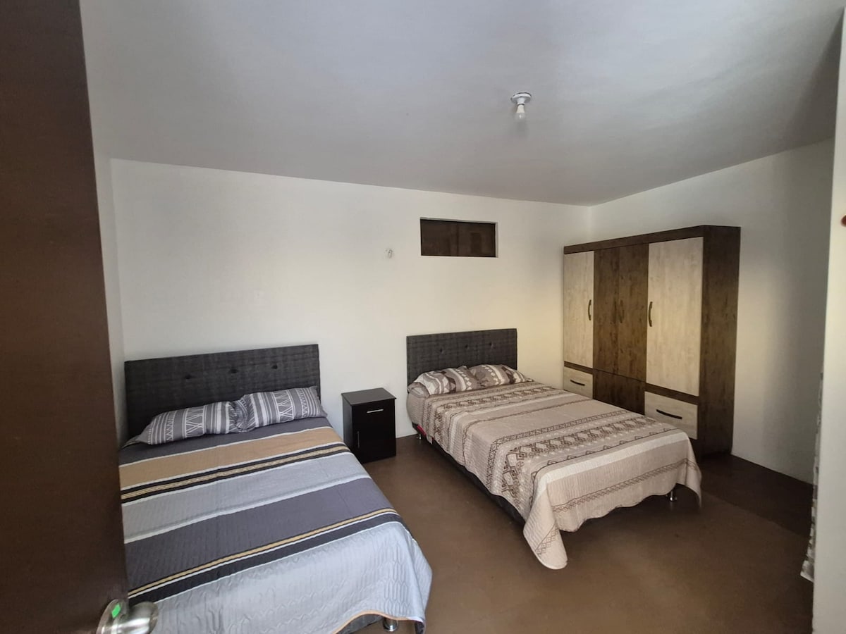 Moderno departamento AMOBLADO Ubicado a sólo 5 minutos (EN AUTO) del centro de Mollendo (plaza, mercado, etc.) y 7 minutos (EN AUTO) de la caleta Catarindo - Cuenta con 01 habitación amplia con DOS CAMAS de 02 plazas, TV de 40¨ y baño completo con ducha y agua caliente las 24 horas - Área de cocina equipada con electrodomésticos, mesa de comedor y pequeña sala de estar con ½ baño, sofá y TV de 40¨ INCLUYE: Agua potable, luz, WiFi, uso de COCHERA y terraza compartida
