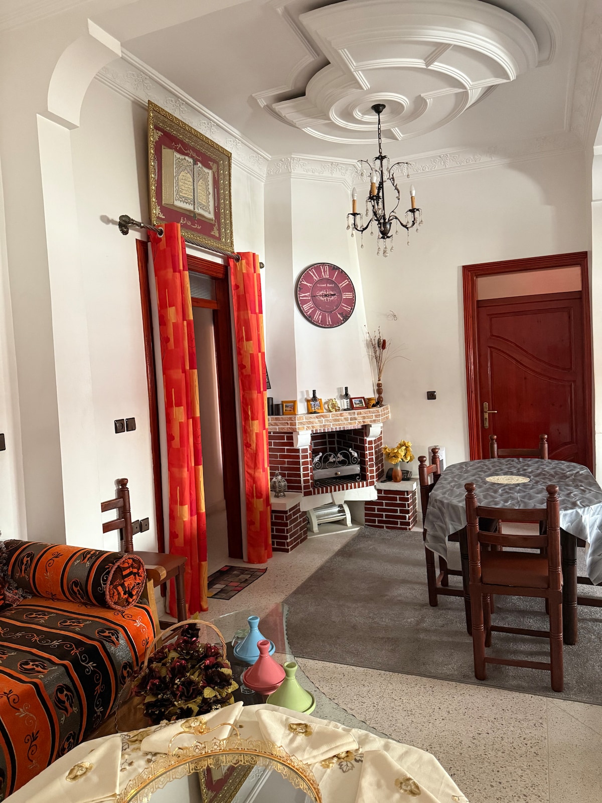 Esta villa acogedora y amplia en el centro de la ciudad cerca de todos los lugares de interés y sitios históricos (murallas y palacios, artesanía, vestigios romanos de Volubilis, ciudad espiritual de Moulay Driss), pintorescas ciudades de montaña; información sobre la medina y su gastronomía; cocina equipada; cientos de canales de televisión; 3 salones, uno de ellos con zona de fuego y uno de 100 m2 adecuado para fiestas y eventos; Wifi de fibra óptica; sillones jardín, sueño reparador en 4 habitaciones con aire acondicionado y balcones.