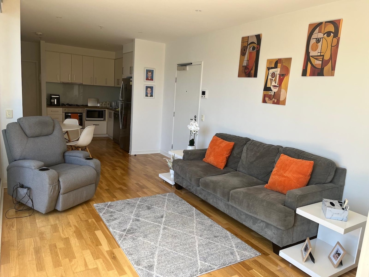 Un hermoso apartamento recientemente renovado situado a solo 100 metros de la famosa playa de Port Melbourne, a 5 minutos a pie del icónico restaurante Bay St y de la sensación de compras y a 10 minutos en coche de la ciudad. El balcón orientado al norte tiene vistas a todo el horizonte de Melbourne sin interrupciones. ¡Contempla la puesta del sol sobre la ciudad desde tu balcón! Cama tamaño queen muy cómoda con colchón y ropa de cama de alta calidad que te garantizarán un sueño reparador. Televisor de 70 pulgadas en el salón con Foxtel. Televisión de 50 pulgadas en el dormitorio.