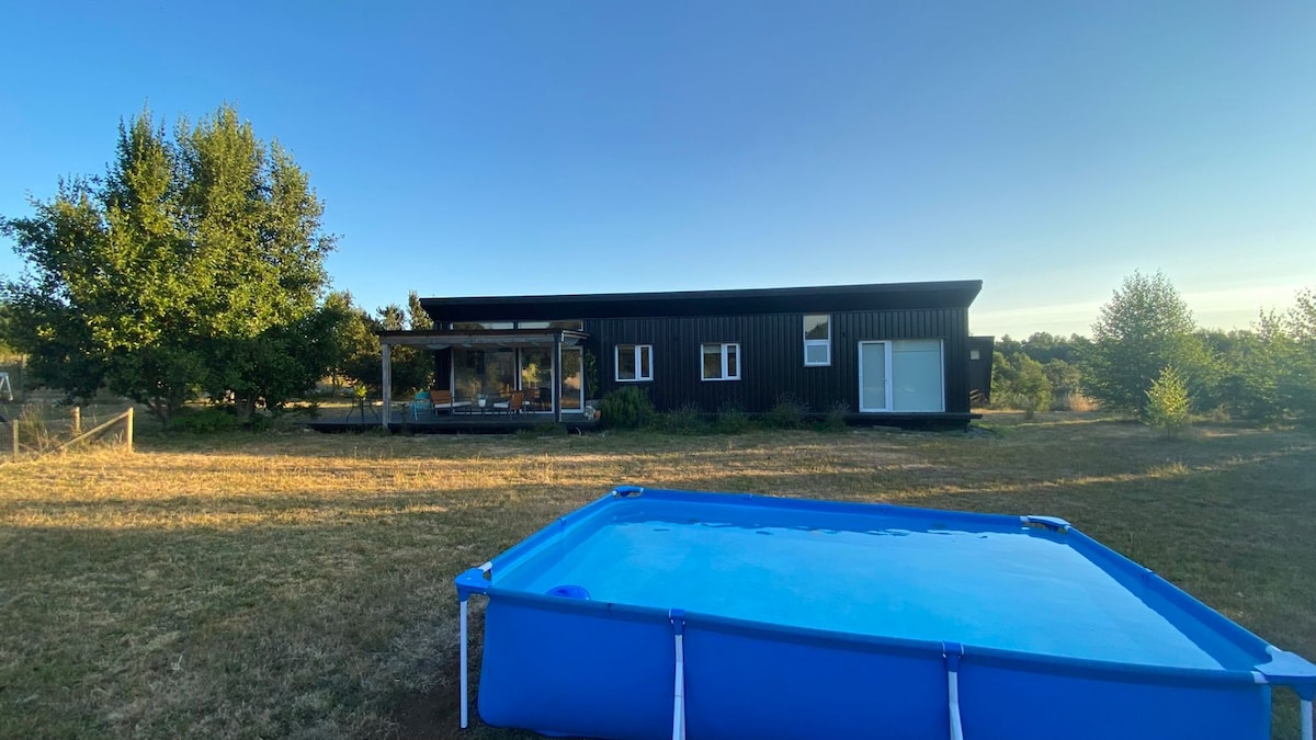 Alkimia es un refugio de paz y bienestar, para reconectar con la calma y la naturaleza sin renunciar a la comodidad. Cabaña de +90m2 construídos, totalmente equipada: solo llegar y disfrutar; con seguridad y privacidad absolutas. Con vista al volcán Llaima, piscina 9x3.5 cerrada(usualmente +25 grados verano y se puede temperar),trampolín y mesa de ping pong, para descanso consciente y diversión saludable. Ideal para personas tranquilas que valoran el silencio, la naturaleza y el equilibrio.
