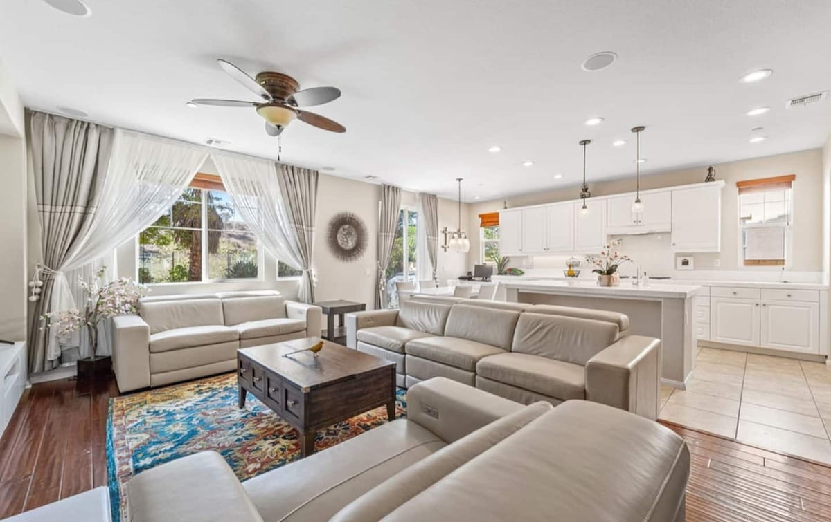 Disfruta de esta encantadora, espaciosa, luminosa y brillante casa de 3 dormitorios con loft, 2,5 baños y garaje para 2 autos. Tanto si estás en un viaje de negocios, quieres un poco de tranquilidad para poder trabajar de manera efectiva o estás de vacaciones con familiares y amigos. Esta casa se encuentra a pocos minutos de restaurantes, supermercados, museos, campos de golf, escuelas, parques y hospitales. Las playas y atracciones turísticas como Disneyland, Legoland, Knotts Berry Farm, Universal Studios, etc. están a 40 minutos a 2 horas en auto.