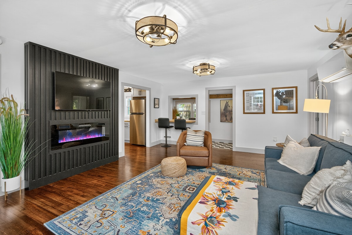 Disfruta de una estancia inolvidable en el Bluegrass & Bourbon Bungalow. Con un jacuzzi, una amplia terraza trasera y un tema de caballos, esta tranquila casa es una mezcla perfecta de comodidades modernas y encanto vintage. A poca distancia de Fort Harrod y de las emblemáticas destilerías, esta es la mejor escapada para los entusiastas del bourbon. Shaker Village de Pleasant Hill, a 11 minutos en auto. Parque estatal Fort Harrod: 12 minutos en coche Destilería Four Roses, 19 minutos en auto. Reserva para recuerdos duraderos en Harrodsburg: consulta los detalles a continuación