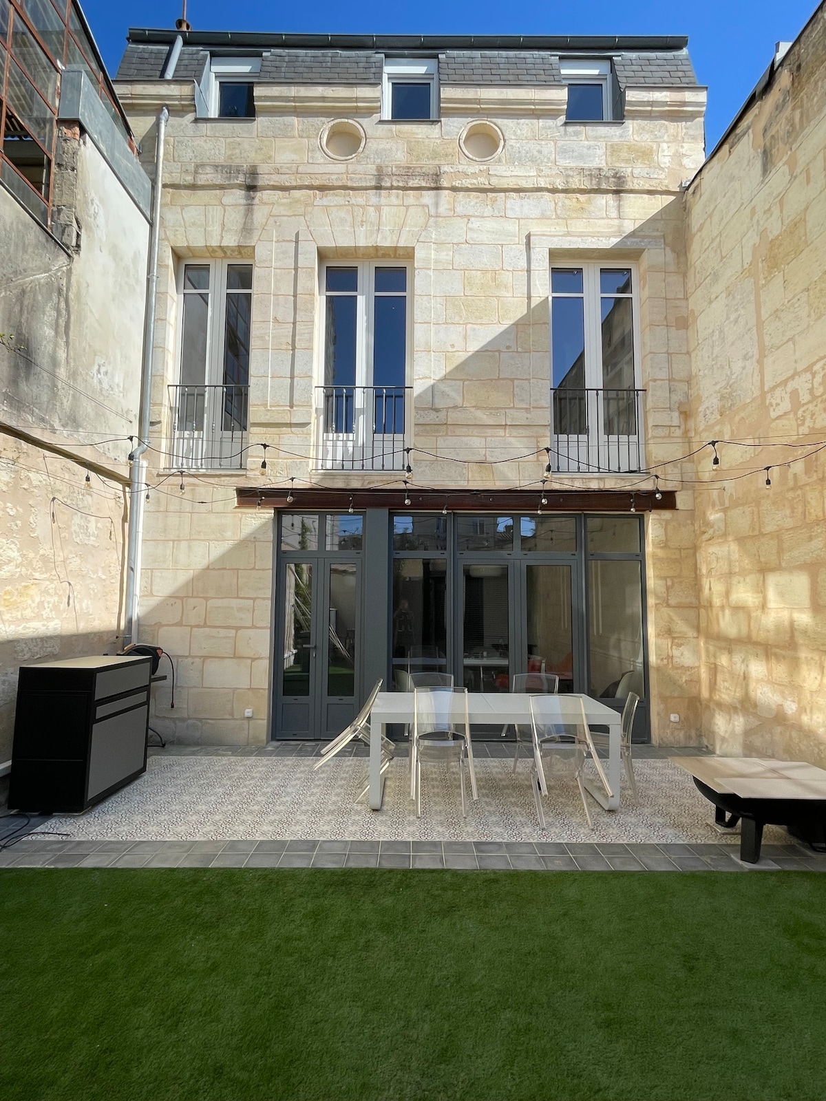 A 2 pasos de los muelles y de la ciudad del vino, esta cómoda casa adosada reformada orientada al suroeste puede alojar hasta 6 personas. El alojamiento consta de: PLANTA BAJA: - garaje - jardín con plancha y barbacoa + muebles de jardín - amplia sala de estar con TV y wifi - cocina totalmente equipada + lavadora y secadora + aspiradora - Aseo PRIMERA PLANTA: - 2 habitaciones con camas de 160 y 180 - 1 dormitorio con camas dobles - baño y ducha - Aseo Se proporcionan sábanas y toallas.