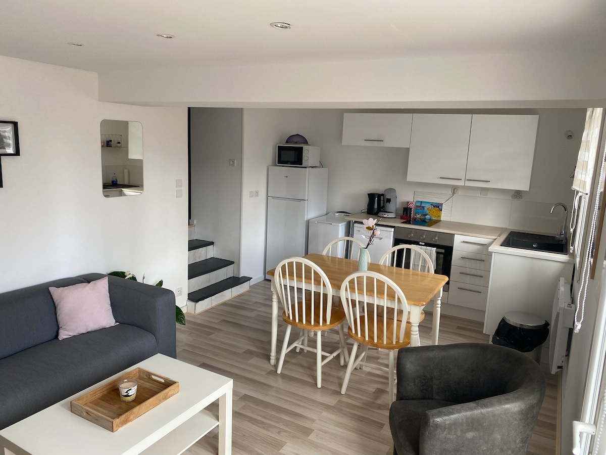 Apartamento luminoso, funcional y bien equipado, a 50 metros del mar. Cocina equipada, sala de estar con zona de estar y comedor con salida al balcón. 2 dormitorios, uno con 1 cama de 140*190 y el otro con 2 camas de 90*190. Cuarto de baño con ducha e inodoro. Entrada independiente en la planta baja, escalera interior para acceder a las salas de estar. Aparcamiento gratuito en la calle ¡Ubicado cerca del mar, de las tiendas y de los senderos! /!\ Período julio/agosto, mínimo 4 noches por favor para asegurar la logística
