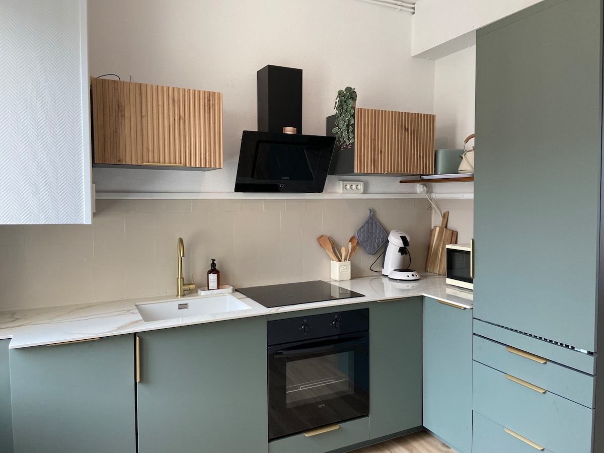 En el corazón de Merlimont-Plage. Apartamento de dos ambientes de 40 metros cuadrados, reformado, totalmente equipado y espacioso. En el primer piso de una pequeña copropiedad en una calle tranquila y gratuita para estacionarse. Está idealmente situado cerca de todos los servicios, restaurantes, bares y panadería. Todo a menos de 150 metros. - Cama y colchón de gama hotelera 160x200 - Cocina equipada (hervidor de agua, tostadora, cafetera Nespresso) - Se proporcionan sábanas y toallas a 10 min de Touquet y Berck