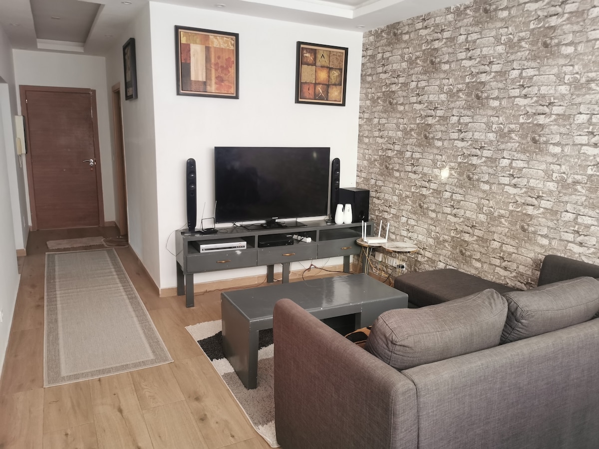 Amplio y cómodo 3 dormitorios bellamente diseñados con aire acondicionado en los dormitorios y la sala de estar. Agua caliente en los baños A las familias con niños les encantará el lugar. Las sábanas y toallas limpias vienen selladas por la empresa de limpieza. Wifi, ambiente tranquilo. Cocina totalmente equipada, ya sea que te guste cocinar o simplemente necesites una comida rápida, la cocina moderna tiene todo lo que necesitas. Aparcamiento privado, generador para energía ininterrumpida, lavadora. Check-in sin restricción de horario con el código proporcionado.