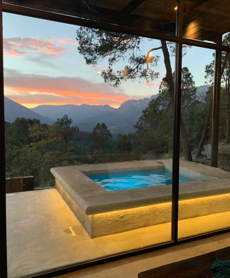 Estilo industrial (climatizada)para disfrutar en familiar y amigos. vista espectacular a las montañas, amplia terraza y bellísima alberca. Max 6 huéspedes, no invitados, niños pequeños y bebés cuentan como extras.. ideal para GEATTING READY asador, portón eléctrico, bardeada, malla electrificada, subes tu vehículo a la altura de la terraza y así el acceso a discapacitados. Máx 2 mascotas a 2 km de la carretera y 400 mts de terracería, a 8 min de pueblo mágico Santiago. Solo música ambiental