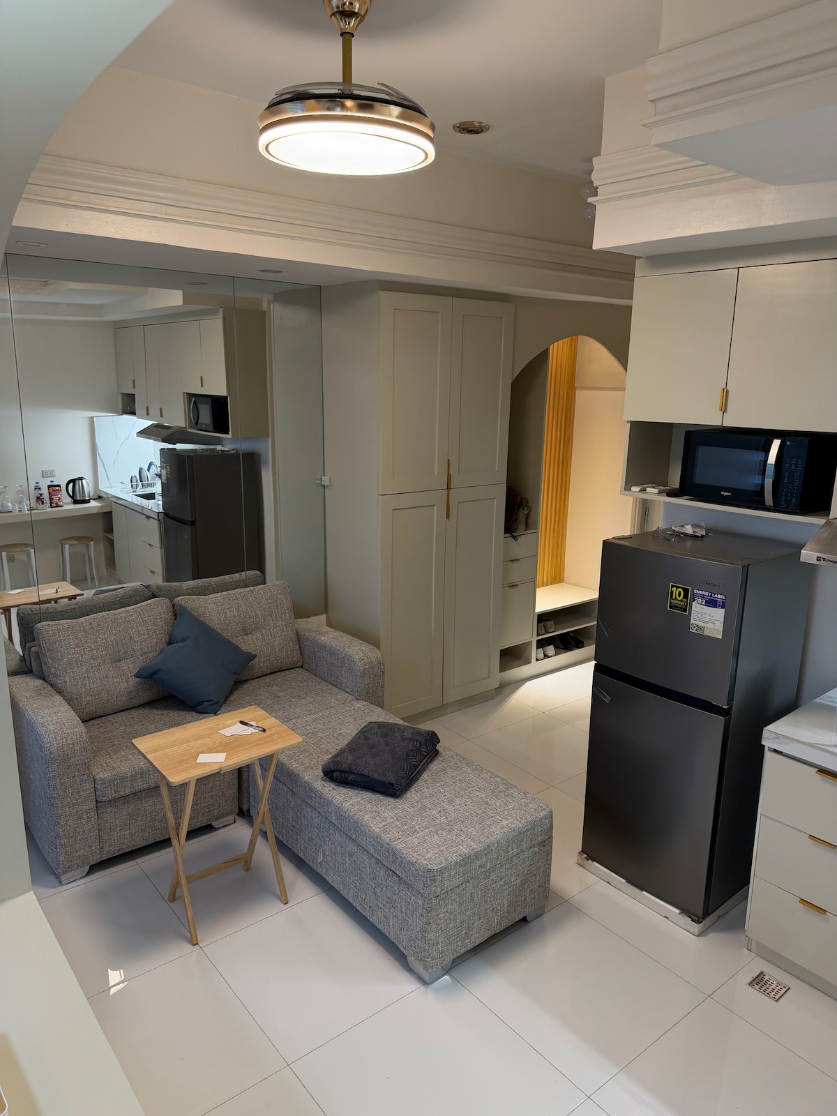 Amplio departamento de 56 m² con 2 habitaciones en Prisma Residences, en Pasig Blvd., a pocos minutos de BGC, Makati y Ortigas Center. Ideal para familias y grupos, el alojamiento tiene capacidad para hasta 6 huéspedes, con una cama tamaño queen, literas IKEA, un sofá cama y colchones en el suelo. Disfrute de WiFi gratuito, Netflix y prestaciones al estilo de un complejo turístico, como la piscina y la terraza en la azotea.