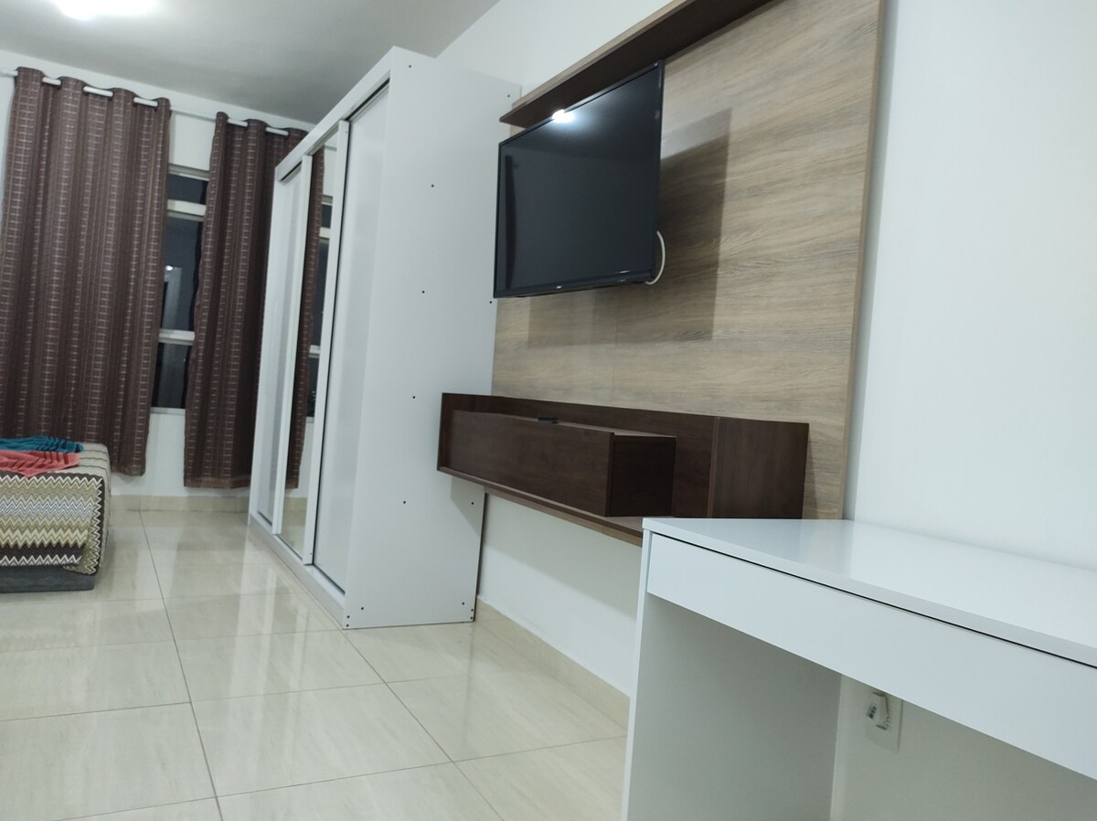 Nesse apto você estará confortavelmente instalado, pode estar certo. Ele oferece tudo o que você precisa para o seu dia a dia - Mesa de trabalho, Internet VIVO FIBRA de 240 Mb, TV Smart de 32', janela imensa com vista sensacional, roupas de cama e banho novas e macias, cozinha equipada e muito mais. A lavanderia é self-service, portaria 24h e garagem para carros pequenos e médios. Será um prazer hospedar você!