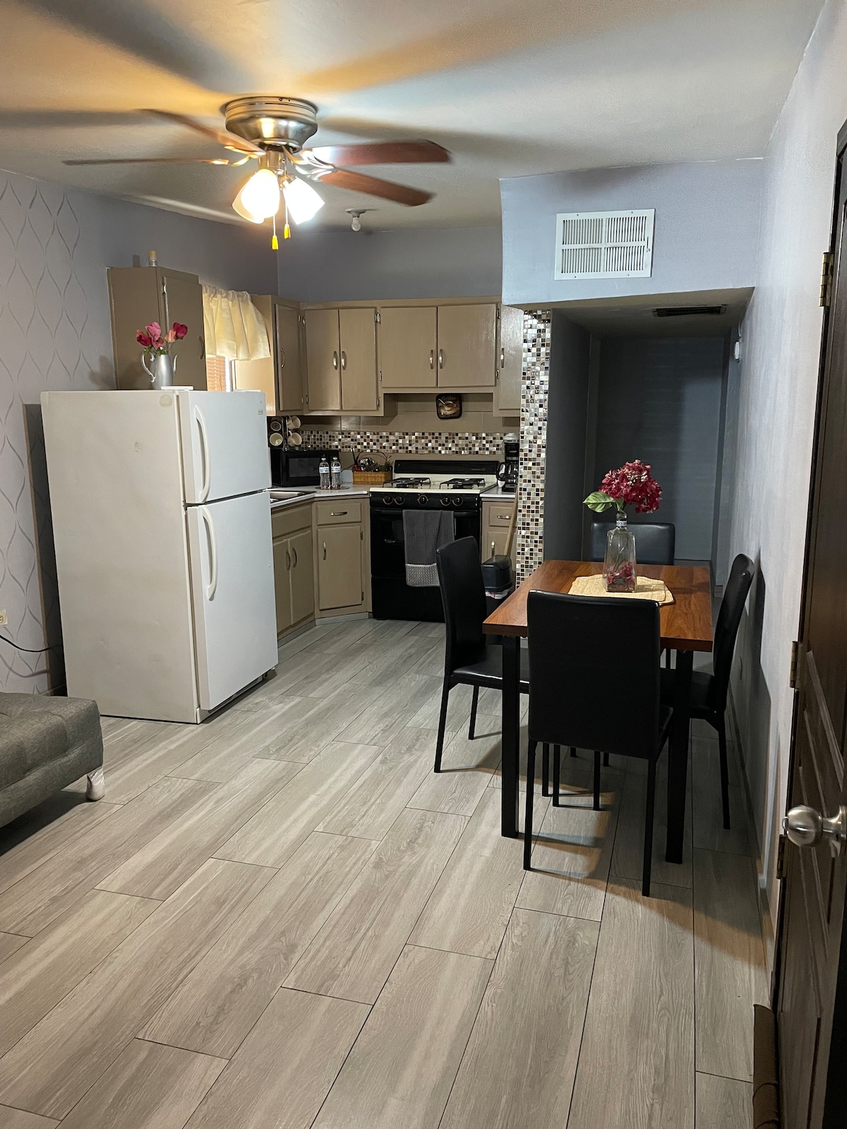 Disfrute de varias noches en una casa recién renovada de Mexicali. Acogedora casa de 1 dormitorio con capacidad para dos, futones agregados, lo que lo convierte en la estadía perfecta para 4 personas. Comunidad privada y protección segura con código de entrada digital a la puerta de entrada para mayor protección para usted y su familia. Ubicación perfecta y fácil acceso a una variedad de restaurantes y tiendas convenientes. Zona exterior con jacuzzi, brasero y asador.