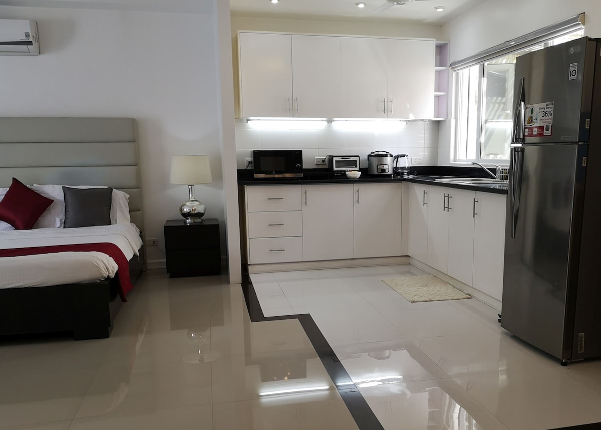 Disfruta de una estancia tranquila con tus seres queridos en este estudio de 38 metros cuadrados con una cama tamaño queen ubicada en la planta baja, a solo unos pasos del restaurante y con un balcón con vistas a la piscina. Hay canales de televisión, un televisor inteligente con una cuenta de Netflix y un router/wifi dedicado disponibles. Hay utensilios de cocina básicos disponibles en la cocina. El servicio incluye limpieza y cambio de sábanas y toallas cada tres días. Envíanos un mensaje para conocer el horario de limpieza.