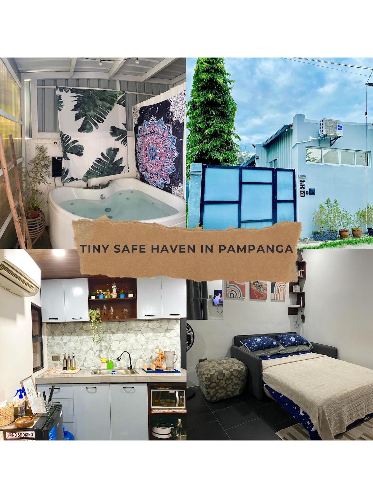 ¡Hola, queridos huéspedes! ¡Bienvenidos a The Pad Tiny I! Este estudio está recién renovado en marzo de 2025, con una piscina y una nueva bañera de hidromasaje al aire libre perfecta para parejas, familias pequeñas, hasta 3. Está totalmente equipado con todo lo necesario: aire acondicionado, TV inteligente con Netflix, wifi rápido y una cocina al aire libre para tu comodidad. Situado en un pueblo seguro y tranquilo, a solo 15 minutos de NLEX San Fernando y a 3 minutos del centro comercial Vista/Waltermart. Acceso rápido a restaurantes y artículos básicos.