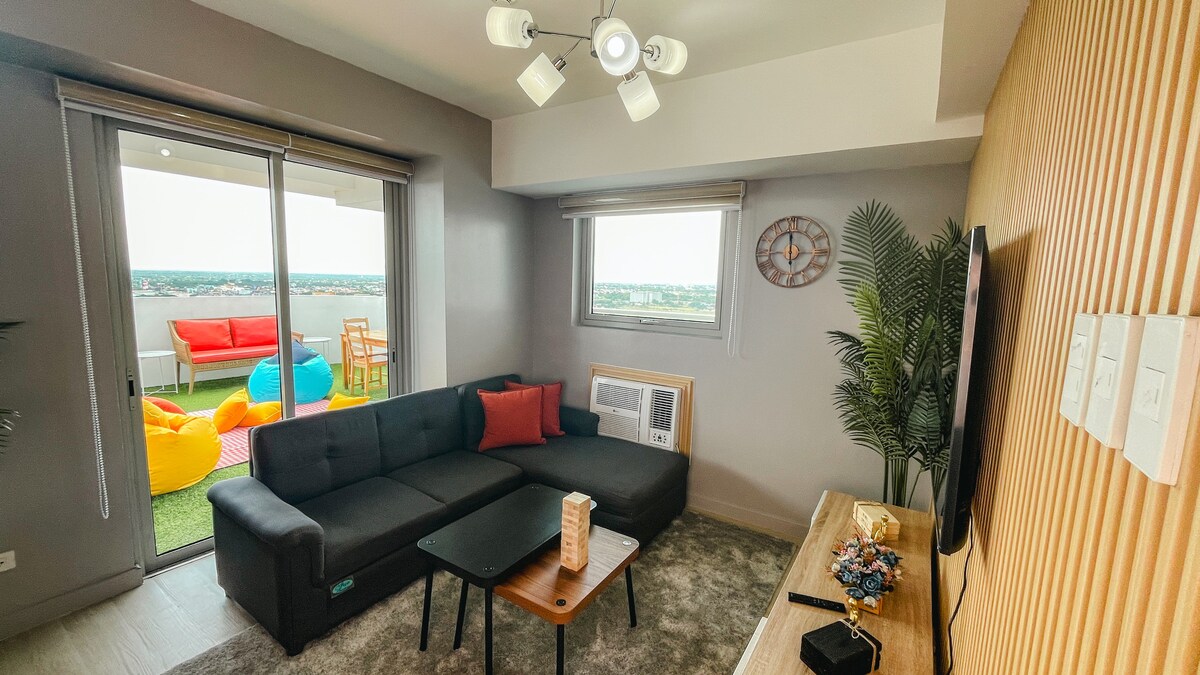 Te damos la bienvenida a The Chill Loft en Azure North, tu elegante escapada en el cielo Entra en la comodidad y el estilo en esta unidad de 2 dormitorios bellamente diseñada en el piso 27 de Azure North. Perfecto para familias, barkadas o parejas que simplemente quieren más espacio para relajarse, este sereno loft ofrece lo mejor de la vida de vacaciones con vistas impresionantes del monte Arayat y las comodidades de la piscina de estilo resort.