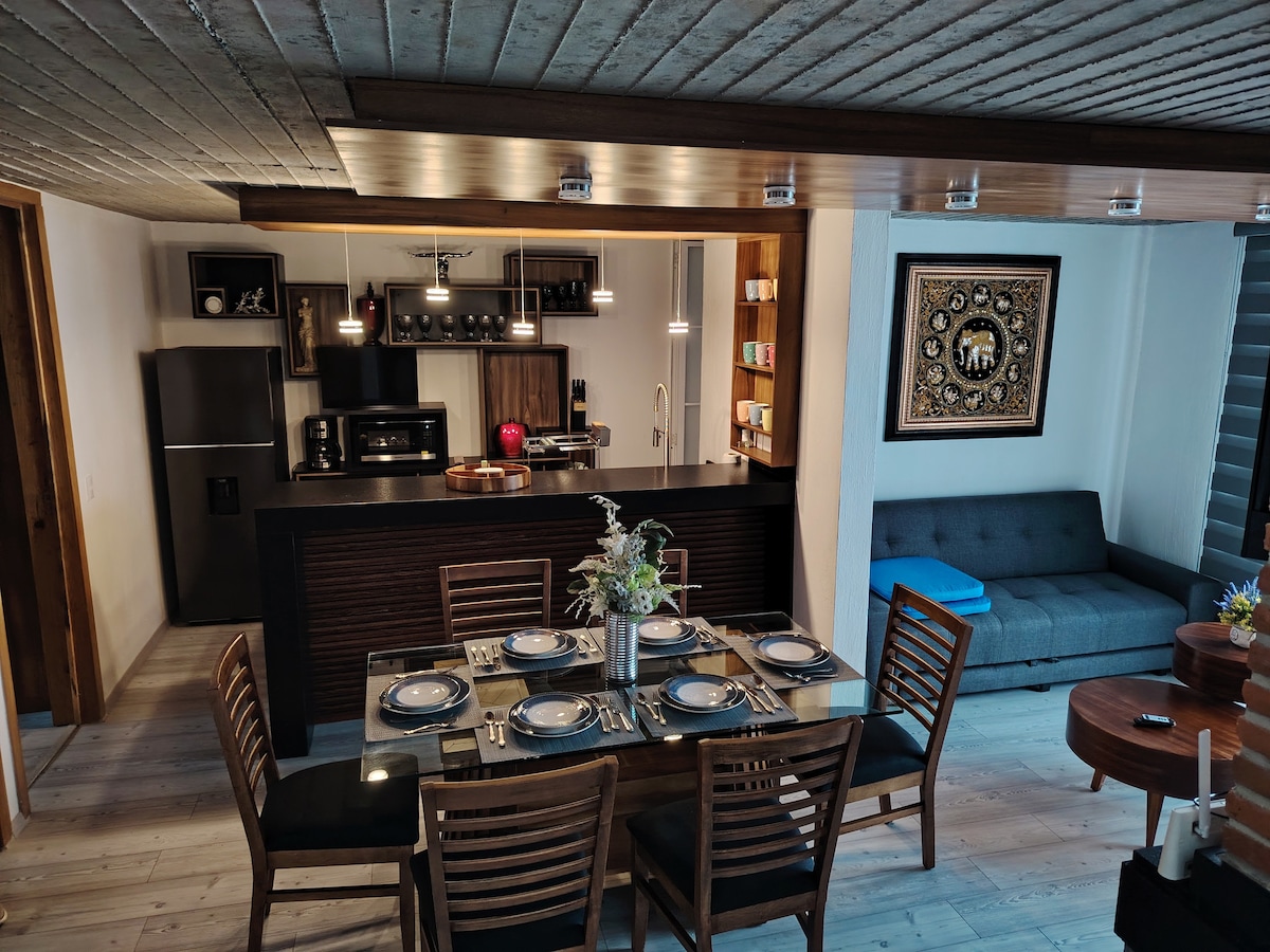 Relájate en esta escapada única y tranquila. Vienes de paseo o de trabajo?? esta opción es para ti. Loft con todas las comodidades para pasar una estancia increíble. En una zona exclusiva donde tienes las mejores vialidades y acceso a cualquier punto de la ciudad. El departamento esta totalmente equipado, cuenta con una cama matrimonial y un sofa cama individual, un escritorio de trabajo, wifi, cocina totalmente equipada, áreas de esparcimiento y estacionamiento exclusivo para un automóvil.