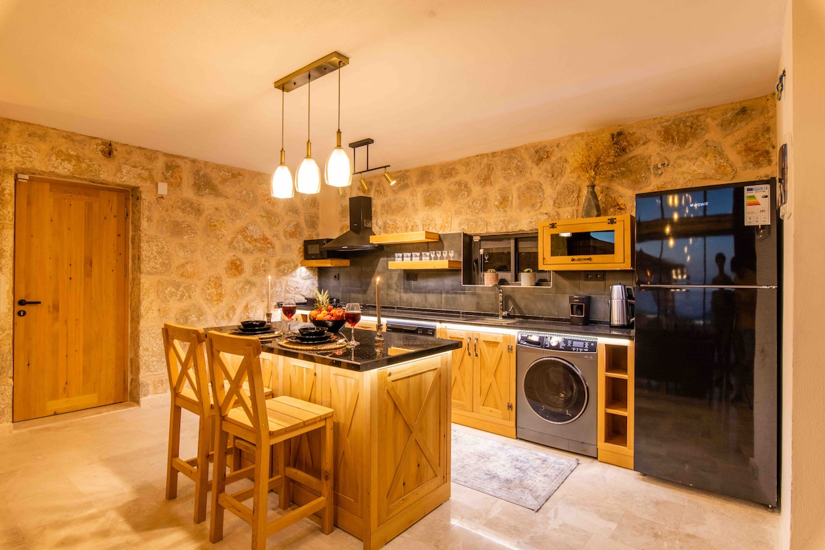 Este lugar memorable es más que ordinario. Villa, una villa de luna de miel protegida con una piscina de dos pisos ubicada en la región de Patara de Kaş Patara, tiene capacidad para 2 personas y atrae la atención con su arquitectura de piedra y su elegante diseño. Nuestra villa, que se encuentra en un entorno tranquilo y tranquilo, está amueblada de acuerdo con estándares modernos que no requerirán la comodidad y la paz de sus hogares. En la villa, cada detalle está cuidadosamente pensado en el mejor detalle y se presenta a tu gusto.