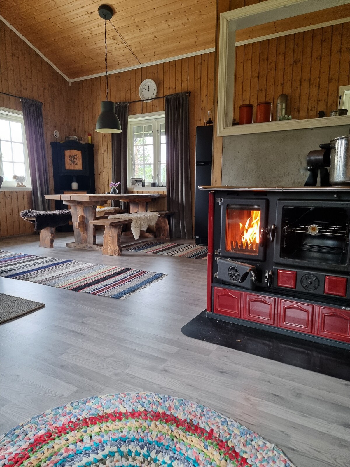 Nuestra casa de campo tradicional con techo gras tiene todas las instalaciones modernas con cocina y baño en el nuevo sótano. Vistas panorámicas del valle del río. Ubicado en una granja con muchos animales: ovejas, caballos, gatos, gallinas, conejos y un pavo real. ¡Gran senderismo y pesca! La cabaña está en tres pisos; dormitorios en el piso superior y baño/cocina en el sótano, con escaleras en el medio. No es adecuado para todos, pero para aquellos a los que no les importa las escaleras, ¡la cabaña ofrece un ambiente acogedor y encantador!