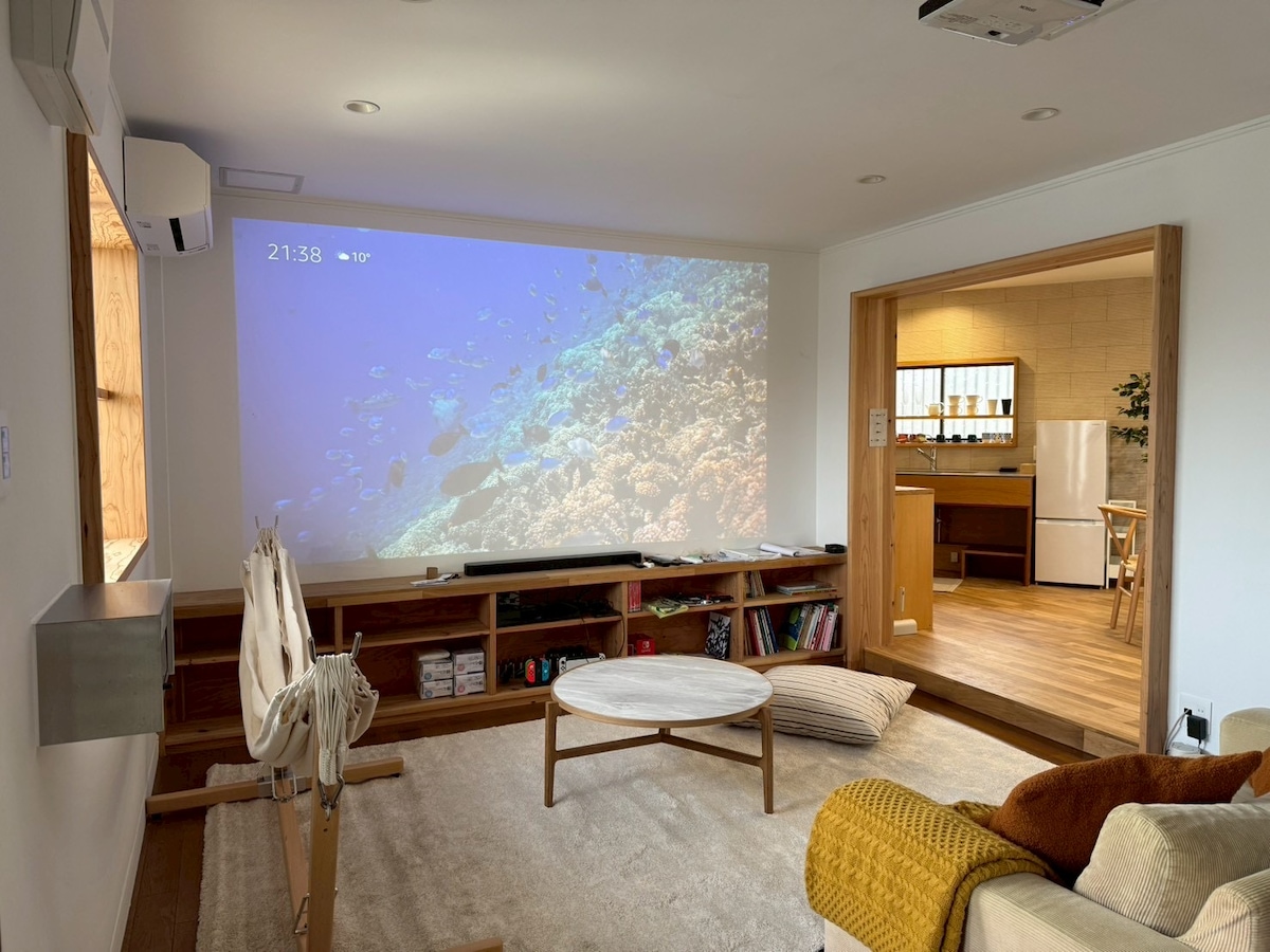 ¡Una antigua casa de campo renovada en el Parque Nacional de Ise-Shima, que solo se alquila a un grupo por día! ¡Pueden alojarse hasta 6 personas! (Para reservas de 6 o más personas, por favor, póngase en contacto con nosotros. Se cobrará un cargo adicional de 5000 yenes por persona) · Ofrece un espacio privado y tranquilo con una gran sala de estar y un baño espacioso. ¡Disfruta de una barbacoa y una sauna al aire libre! · Para que puedas disfrutar de la estancia incluso en días de lluvia, también está equipado con una sala de cine. Podrá disfrutar de películas y otros contenidos audiovisuales en una pantalla de gran tamaño. Además, el mar está cerca, por lo que no te cansarás de quedarte varios días. · A 30 segundos a pie de la tienda de comestibles más cercana, a 10 minutos en coche del supermercado y a 15 minutos en coche de la ciudad española de Shima, se encuentra en una ubicación tranquila pero conveniente. · Para los surfistas, la playa de Kokufu está cerca y se puede ir a surfear en 5 minutos a pie. Además, hay muchas tiendas de surf cerca donde se pueden alquilar tablas y apuntarse a clases. · También hay muchos lugares para pescar en la zona, por lo que los amantes de la pesca también podrán disfrutar de su estancia. · La ciudad de Shima, rodeada de naturaleza, es el mejor lugar para respirar. ¡Ven con tu familia y amigos y crea los mejores recuerdos!