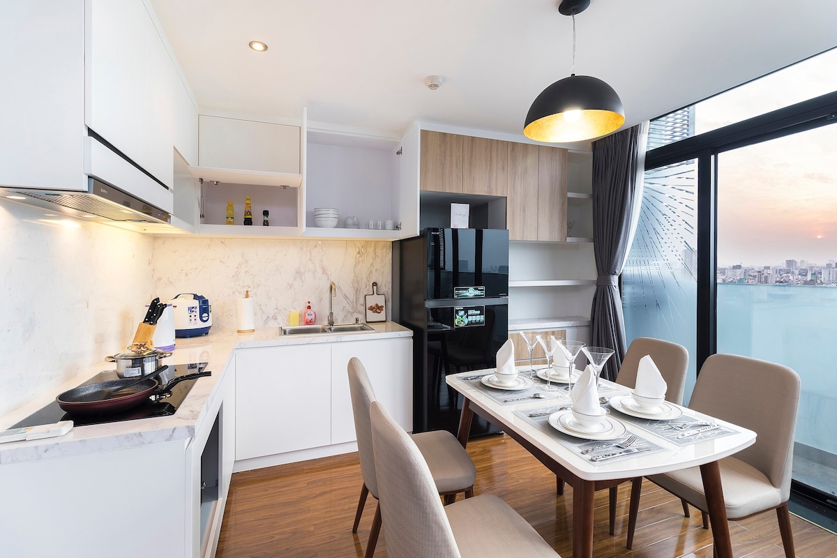 Luxury 5* The Opera Residence Corner Apartment by ChiHome - River View Bason District 1, The LandMark 81, The Galleria, The Mett Office, District 2 Sala Thiso Mall. - Torre B, Scala, nivel 1x unidad 10 - Tamaño: 70 m2 (unidad de esquina) - Incluye 2 dormitorios, 2WC, cómodos para alojarse de 2 a 4 personas. - Televisión inteligente de 65 pulgadas con Netflix y YouTube - Sofá, sillón, mesa de té. - Mesa de comedor con 4 sillas. - Utensilios de cocina completos. - Internet inalámbrico de alta velocidad disponible. • Aire acondicionado para toda la casa - Acceso 24/7 al edificio.