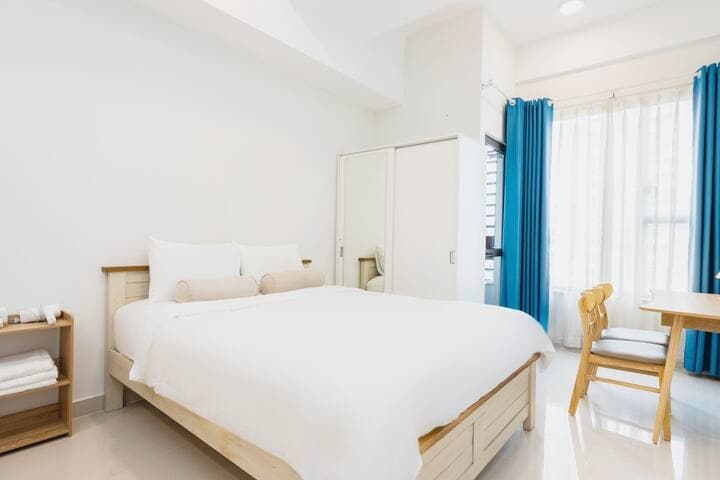 Un apartamento tipo estudio bellamente diseñado con todo lo que necesitas, situado en el centro, pero lo suficientemente escondido para una noche de sueño tranquilo lejos del fuerte ruido de la ciudad. Ideal para viajeros que quieran explorar Saigón y buscan comodidad de calidad y una experiencia más local. - Bonita piscina. - Wifi rápido gratuito, TV por cable. - Servicios gratuitos para tu estancia: lavadora, secadora, aire acondicionado, nevera, agua caliente. - Cocina con suficientes utensilios para cocinar. Nota: No proporcionamos/admitimos facturas con IVA.