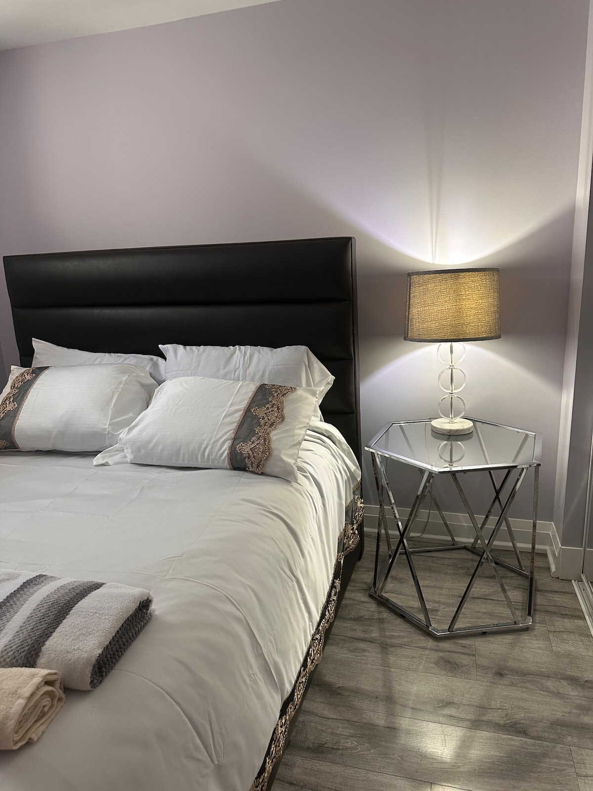 Disfruta de una estancia tranquila en nuestra suite privada de 2 dormitorios ubicada en un tranquilo vecindario de Milton. Con un diseño de concepto abierto con techos de 8,5 pies y cómodas habitaciones, es ideal para parejas, familias o estancias más largas. A minutos de Toronto Premium Outlets, Velodrome, senderos panorámicos y fácil acceso a Oakville, Burlington, Mississauga y el aeropuerto de Pearson.